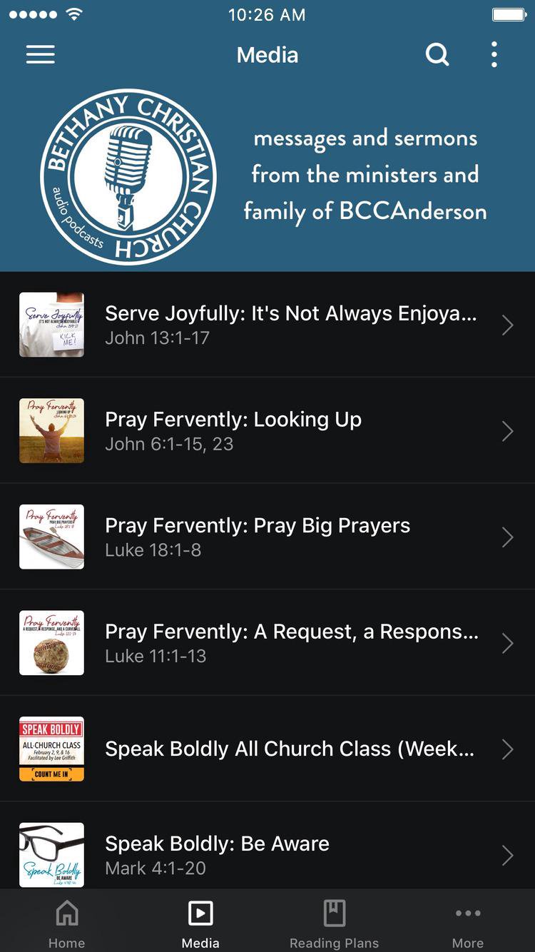 A simple way to connect to sermons, event information, reading plans, and other resources from Bethany Christian Church, Anderson, Indiana. This app is not meant to replace interaction and fellowship, but its purpose is to provide as much information and assistance to help become a mature, growing disciple of Jesus. Our prayer is that this is the first step towards knowing Bethany Christian Church and Christ in a deeper, more meaningful way.