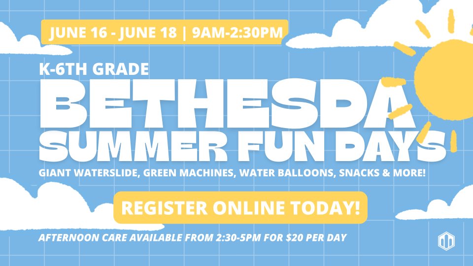 Your K-6th Graders are invited to come celebrate the summer sun with Bethesda's Summer Fun Days!