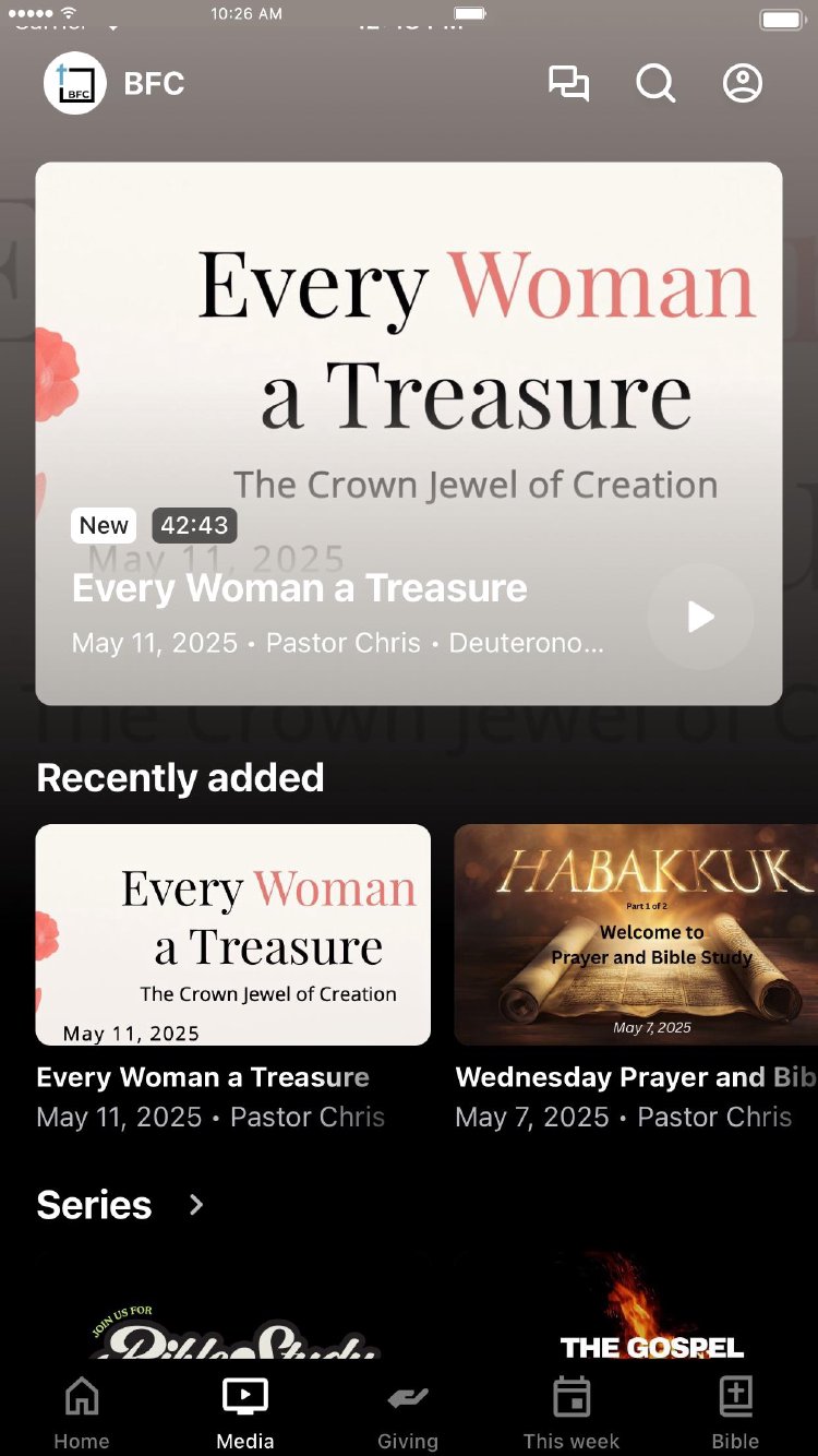 The BFC App will help you stay connected to the day to day life of our church. With this App you can access past sermons, stay updated with push notifications, read the Bible, and view our calendar. Parents will also be able to keep updated on all things happening with BFC Kids and Oasis Youth.