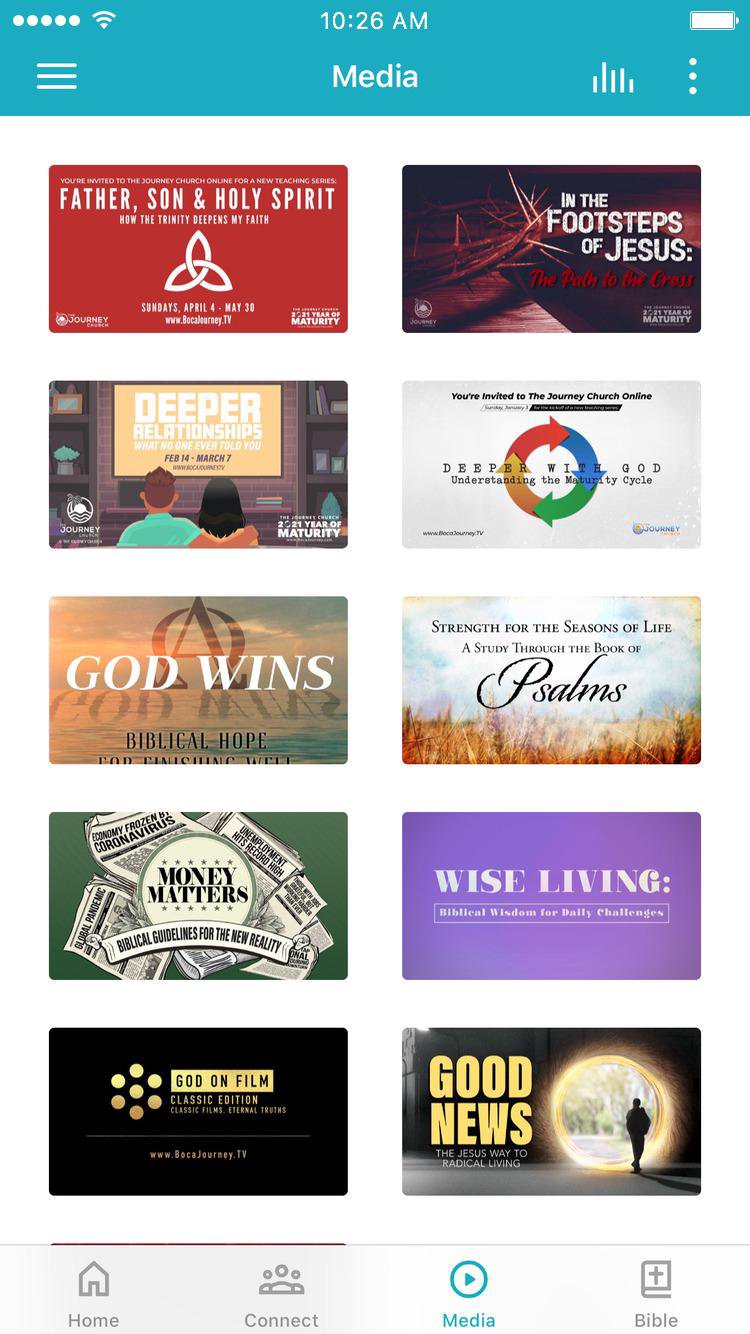 This app will help you stay connected with the day-to-day life of our church. With this app you can: watch or listen to Church Online and past messages; give to the ministry of The Journey, join a Growth Group, start a Bible reading plan, stay up to date with push notifications; share your favorite messages via Twitter, Facebook, or email; and download messages for offline listening.