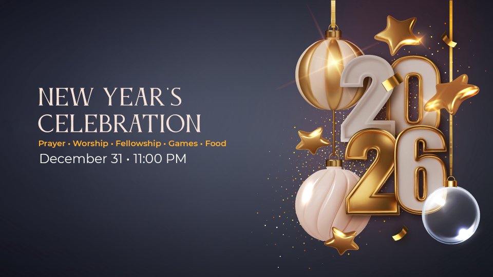 We invite you to celebrate New Year's Eve on December 31 at 11 p.m. at our church. As a church, we will set aside time for words and prayer, songs and thanksgiving to our God. A festive program with food and sweets, games and contests will follow this.