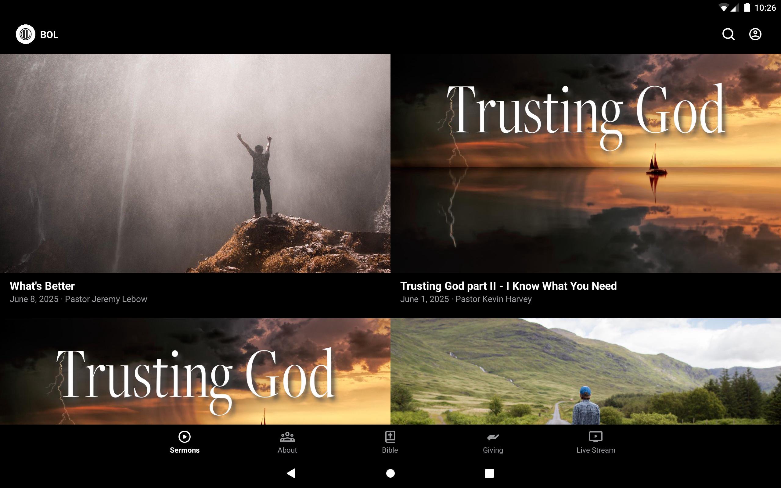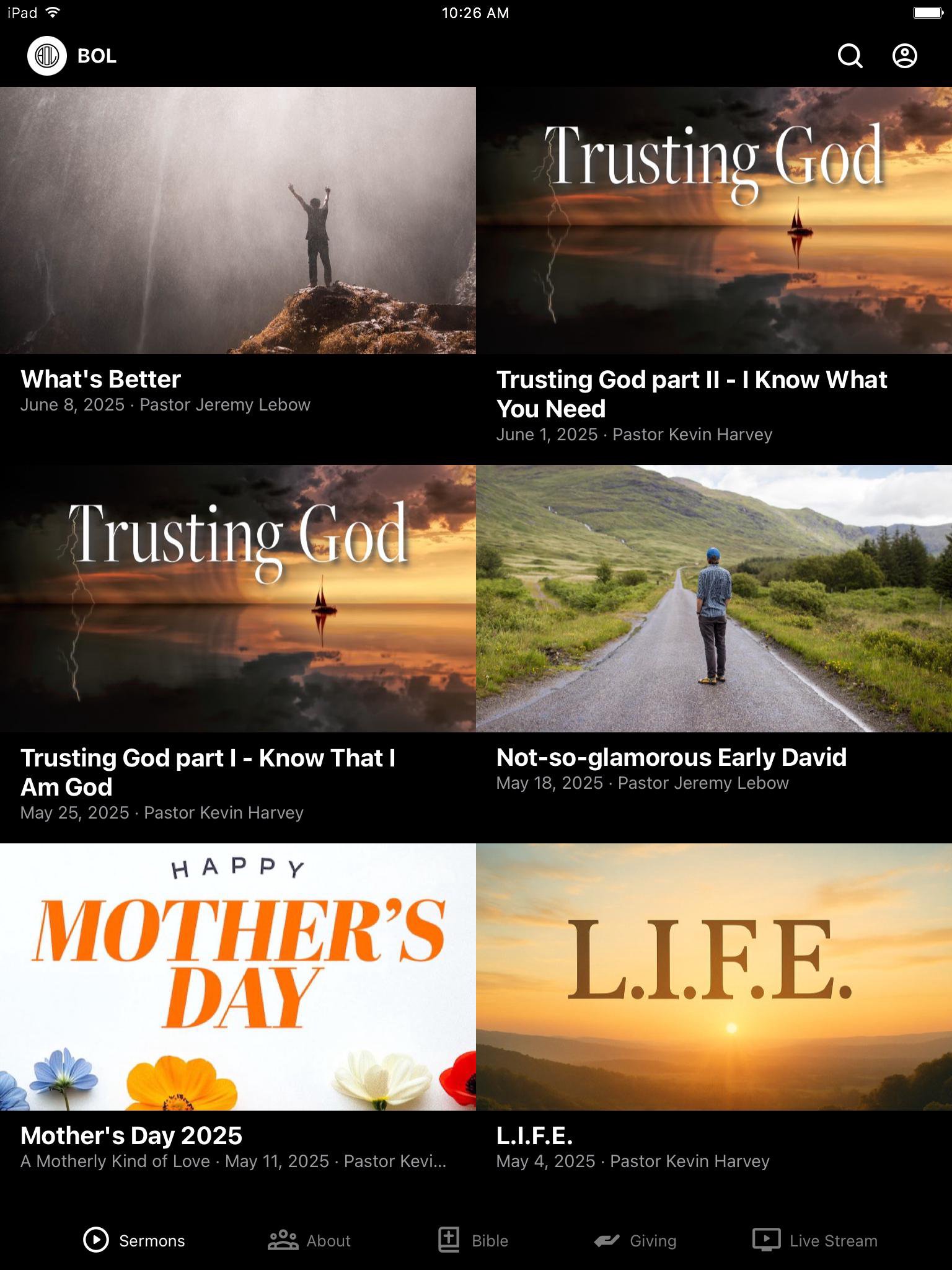 This app will help you stay connected with the day-to-day life of Breath of Life Church. With this app you can: watch or listen to past messages; stay up to date with push notifications; share your favorite messages via Twitter, Facebook, or email; and download messages for offline listening.