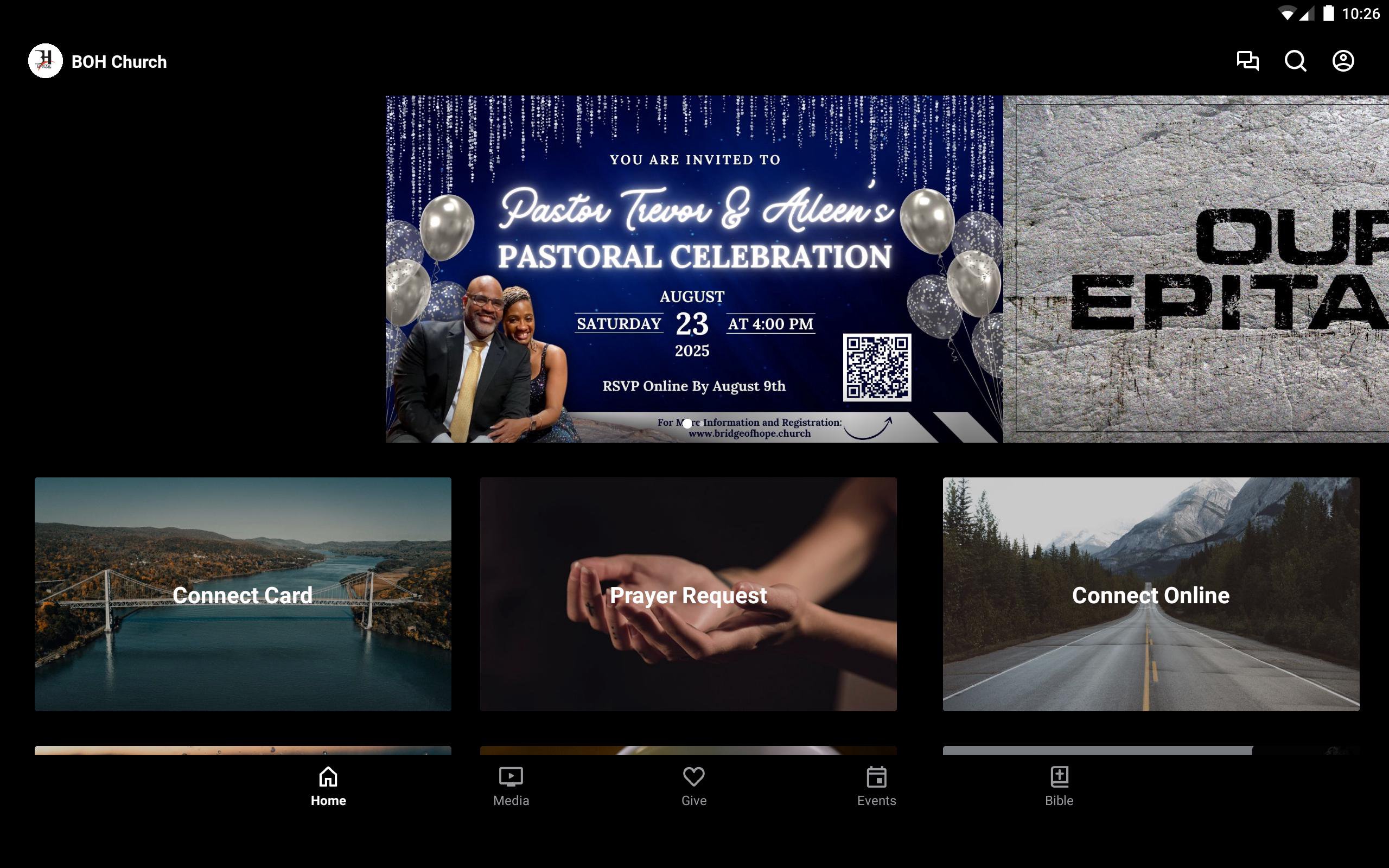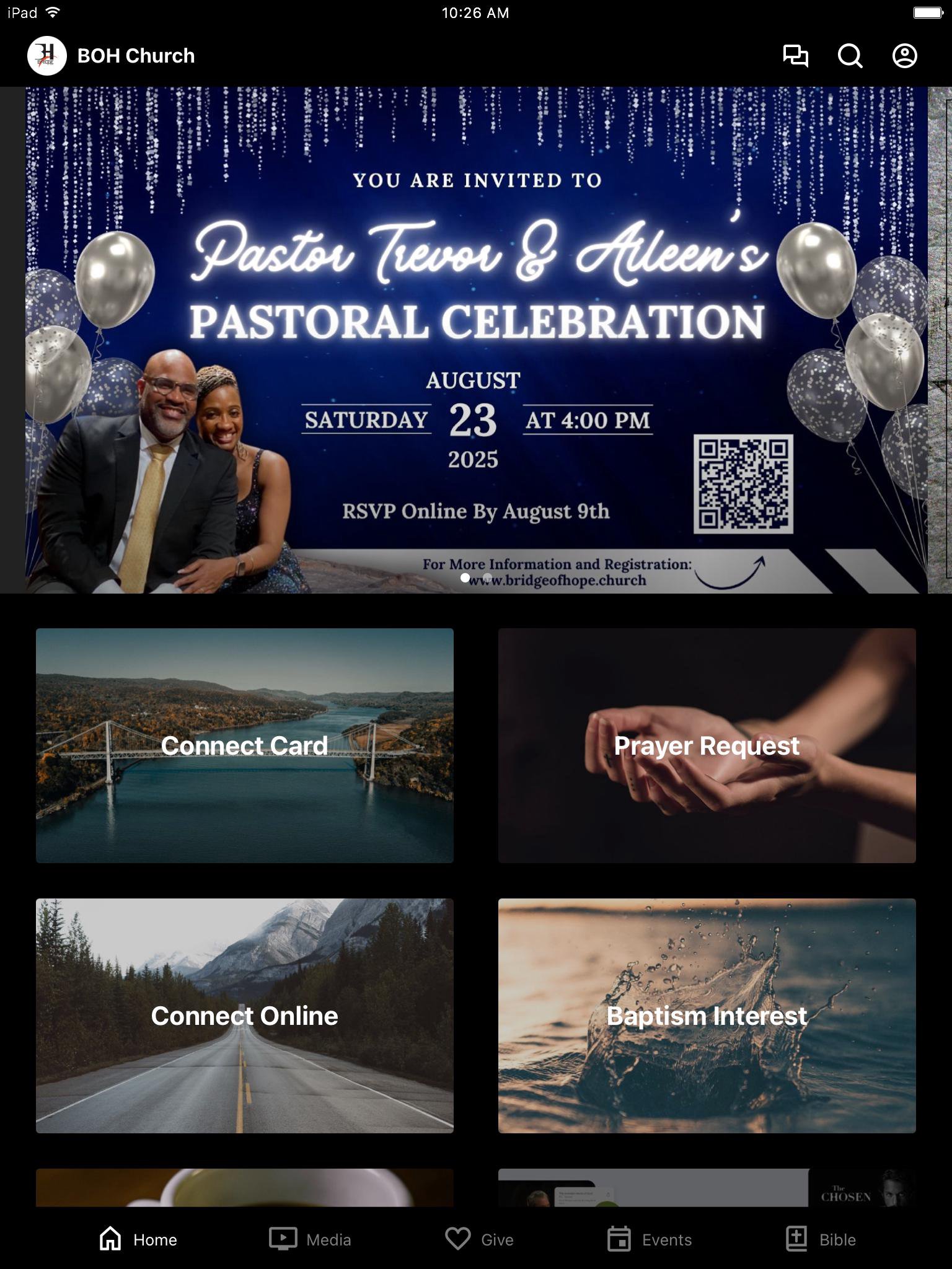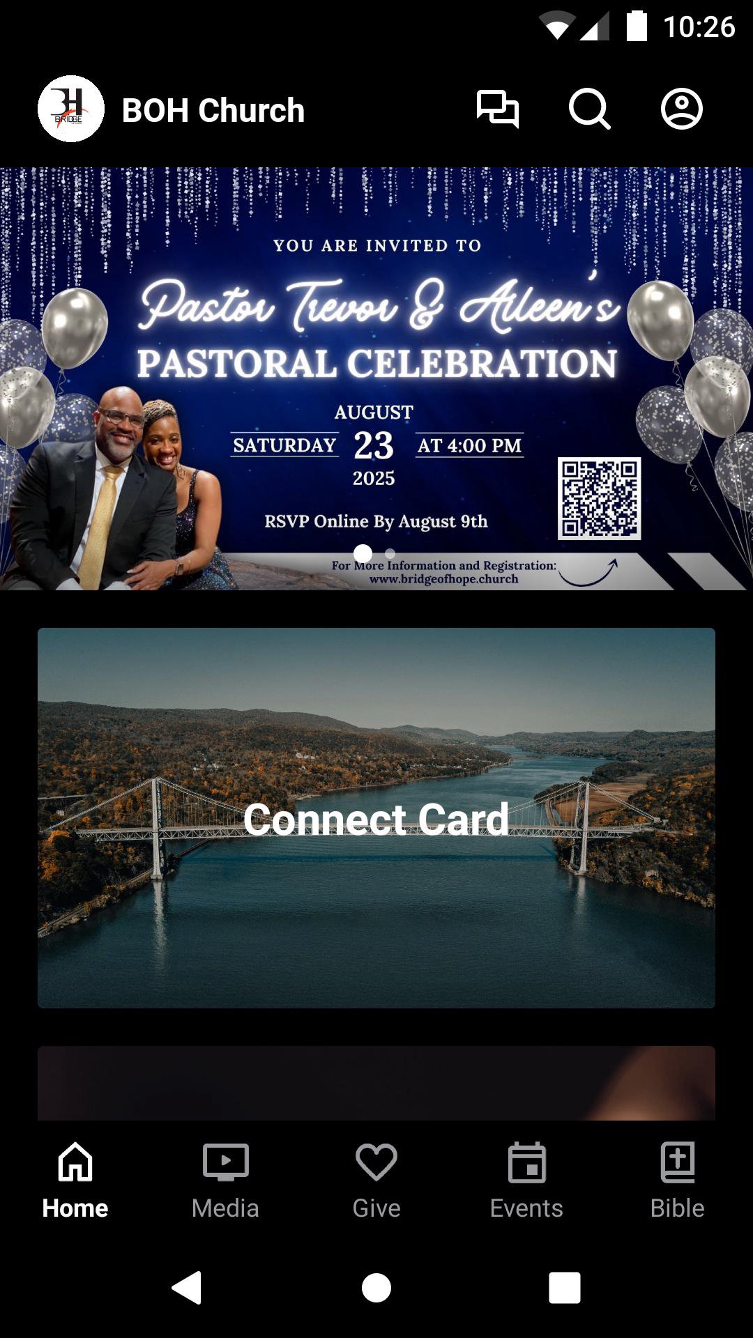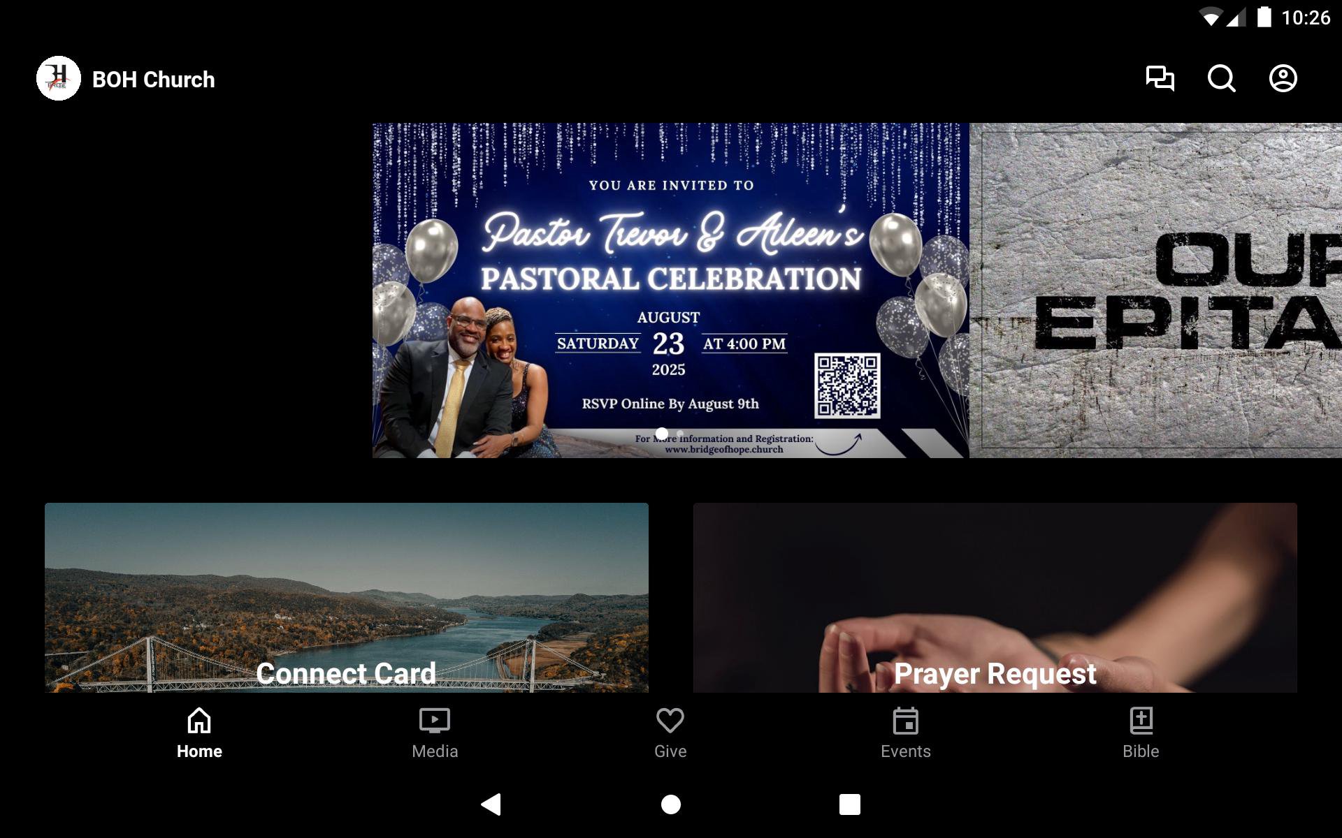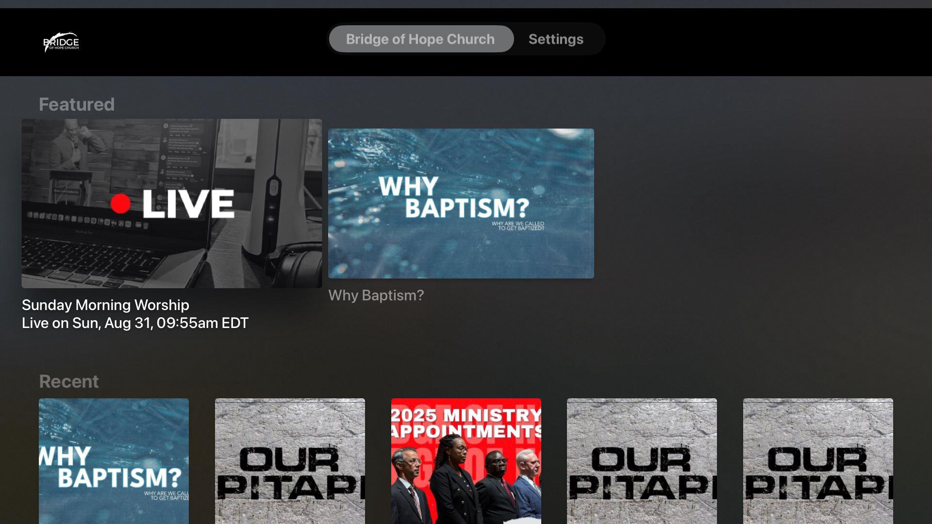 This app will help you stay connected with the day-to-day life of Bridge of Hope Church. With this app you can: watch or listen to past messages; stay up to date with push notifications; share your favorite messages via Twitter, Facebook, or email; and download messages for offline listening.