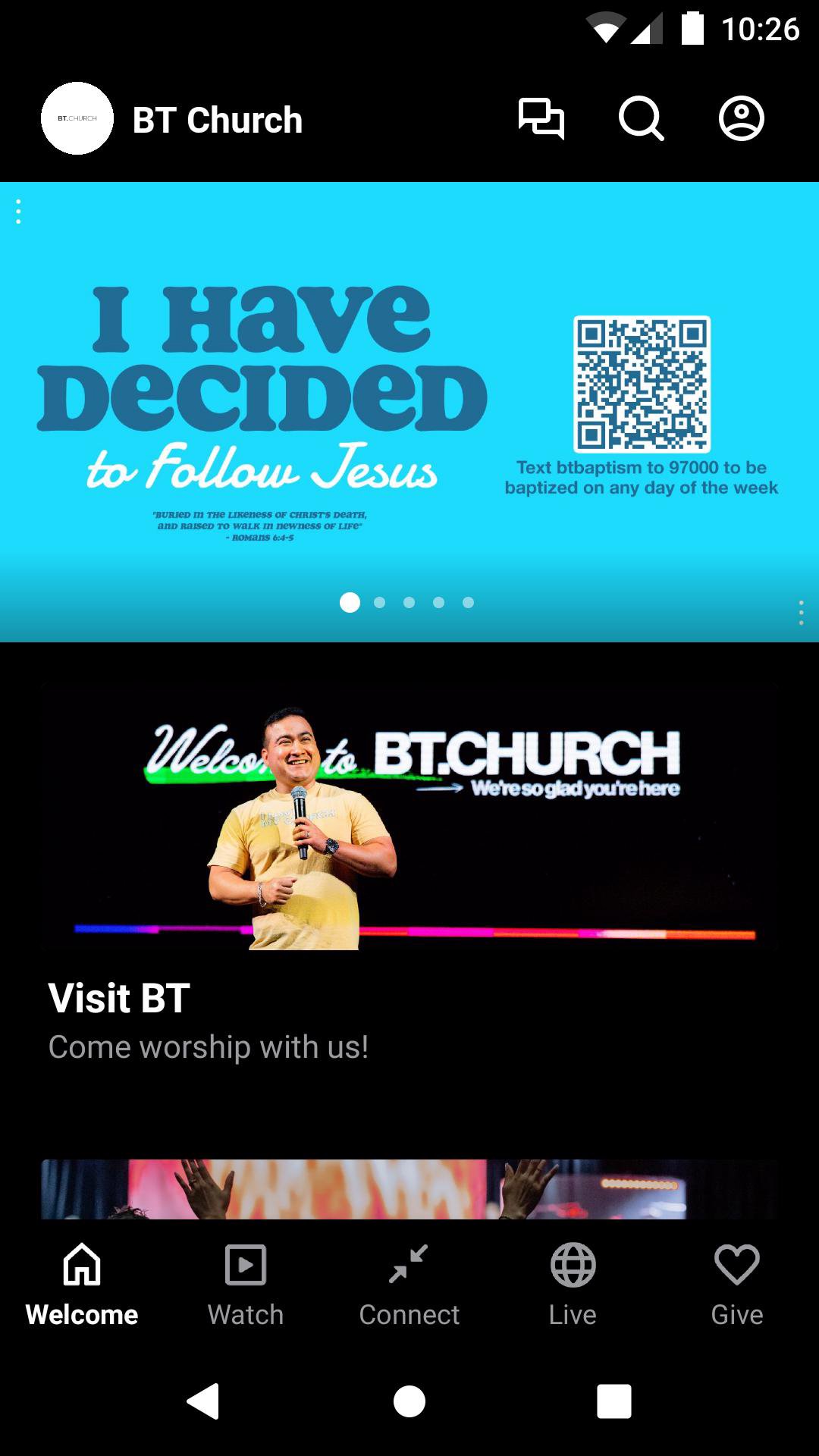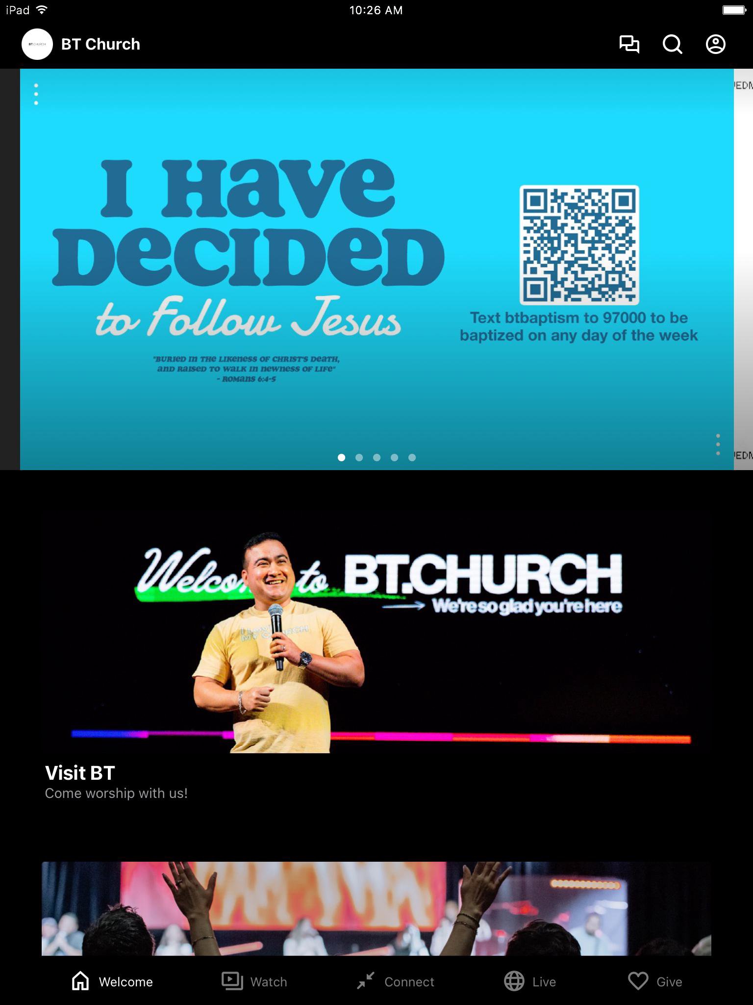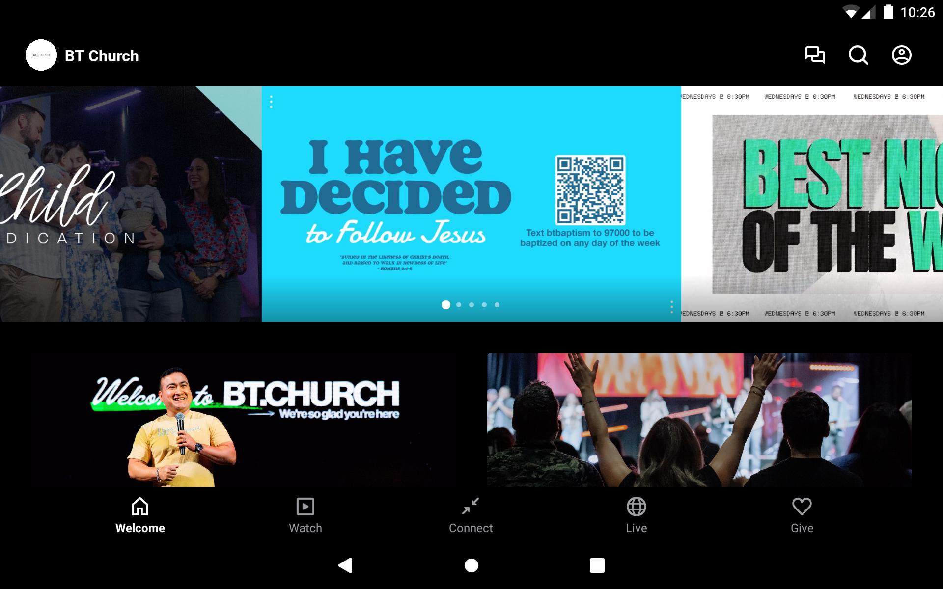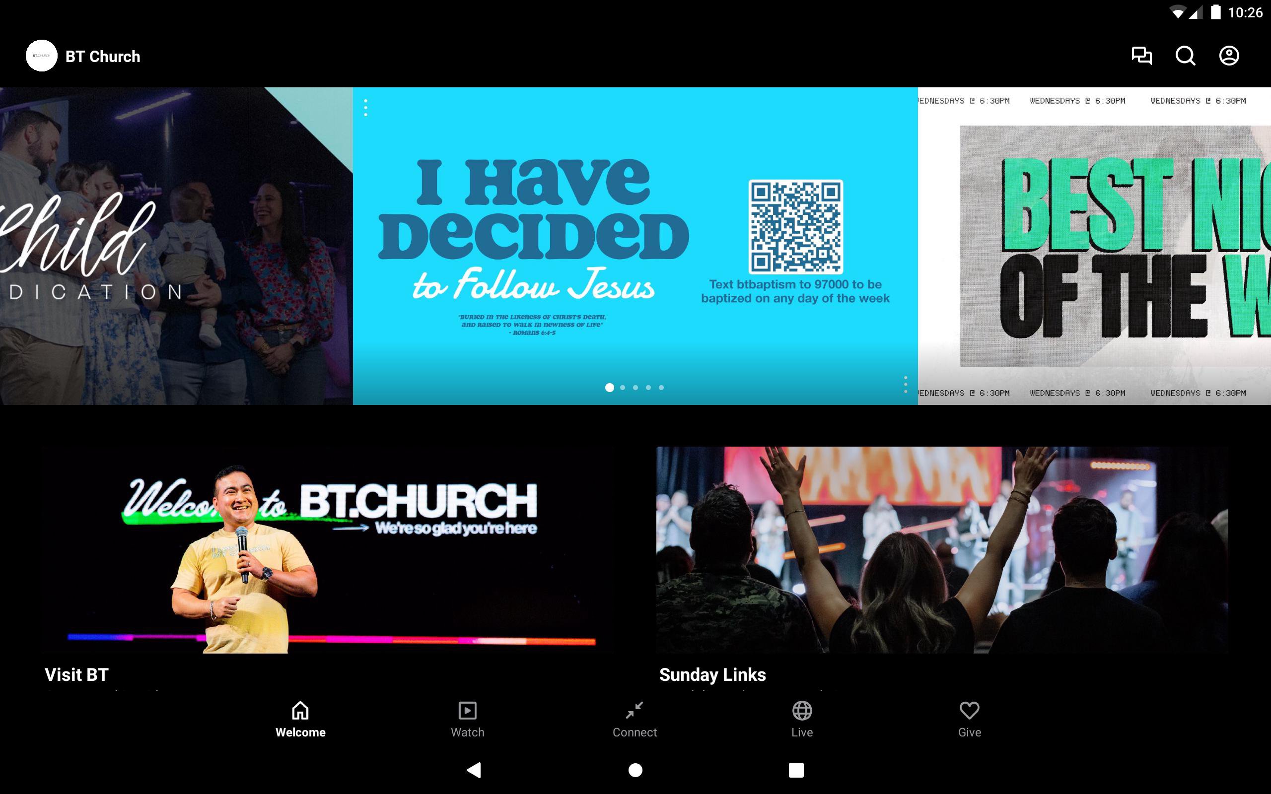 The BT Church App is all about connecting to BT Church through our our content and a space for digital community through in chat messaging. We pray this blesses you and is a powerful way for you to grow in your faith. To learn more about BT, visit our website at bt.church.