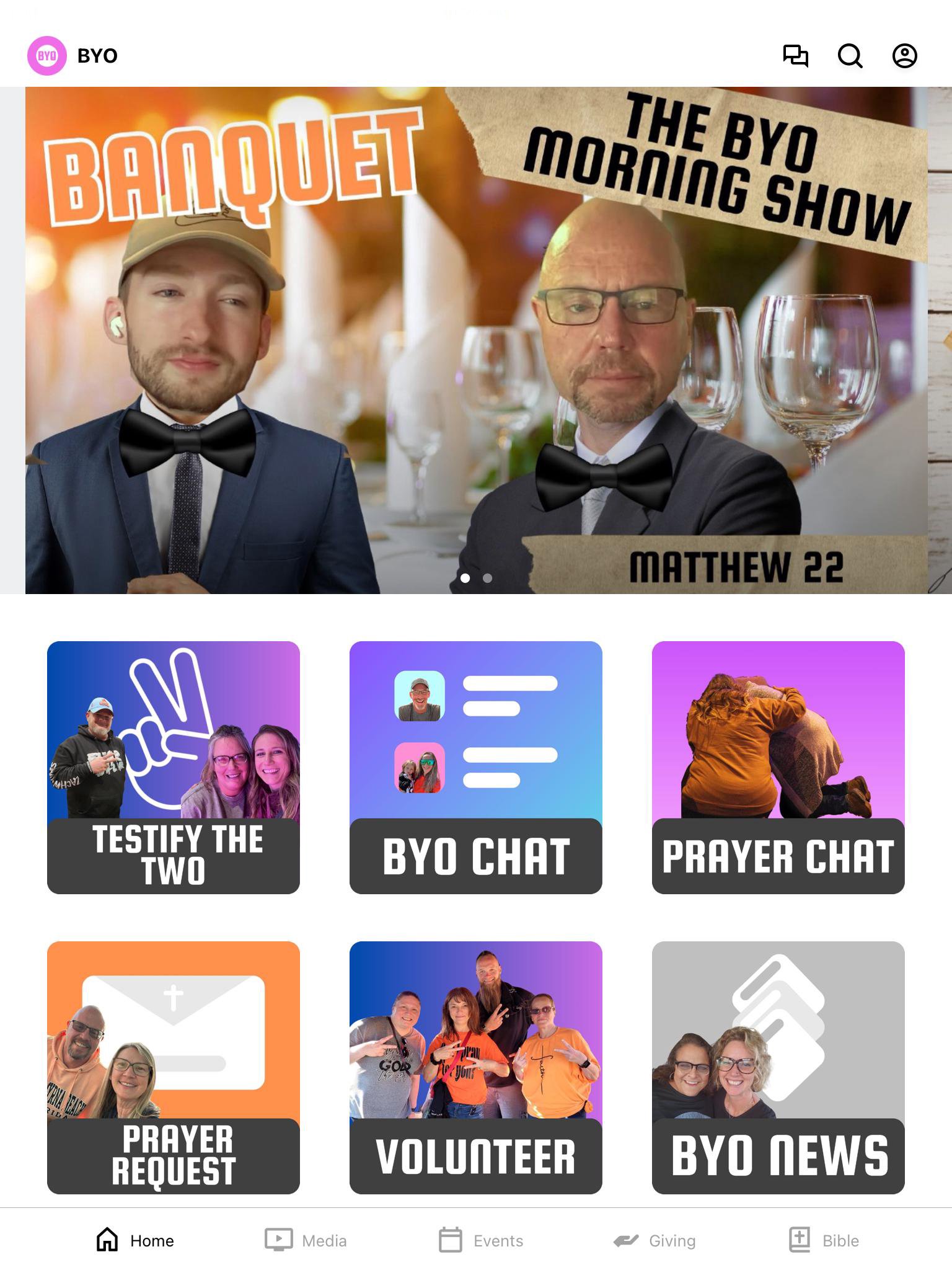 The BYO Church app is the home for being a part of the BYO online family! Watch live streams, the BYO Morning Show, request prayer, stay up to date with events, and much more. BYO stands for "bring your own" because we all bring a past, hurt, and hangups to Jesus where true freedom is found! We are located in Springfield Illinois at 2901 E Sangamon Avenue.