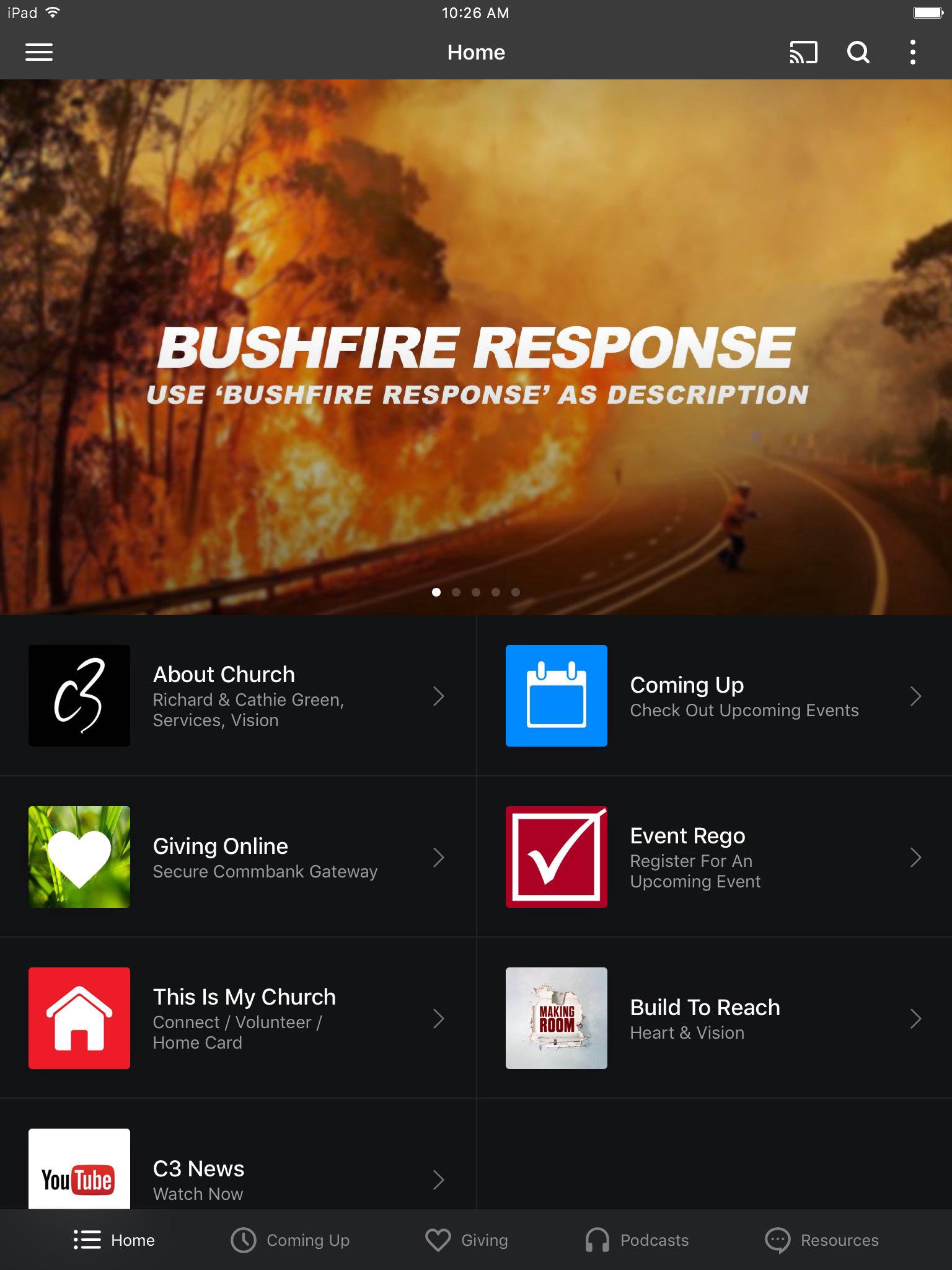 Welcome to the official app of C3 Church Ryde. Content from Senior Ministers Richard & Cathie Green & the C3 Church Ryde team. Includes essential information, event calendar, resource, audio & updates. For more information about C3 Church Ryde visit: http://www.c3churchryde.com.au The C3 Church Ryde App was created with the Subsplash App Platform.
