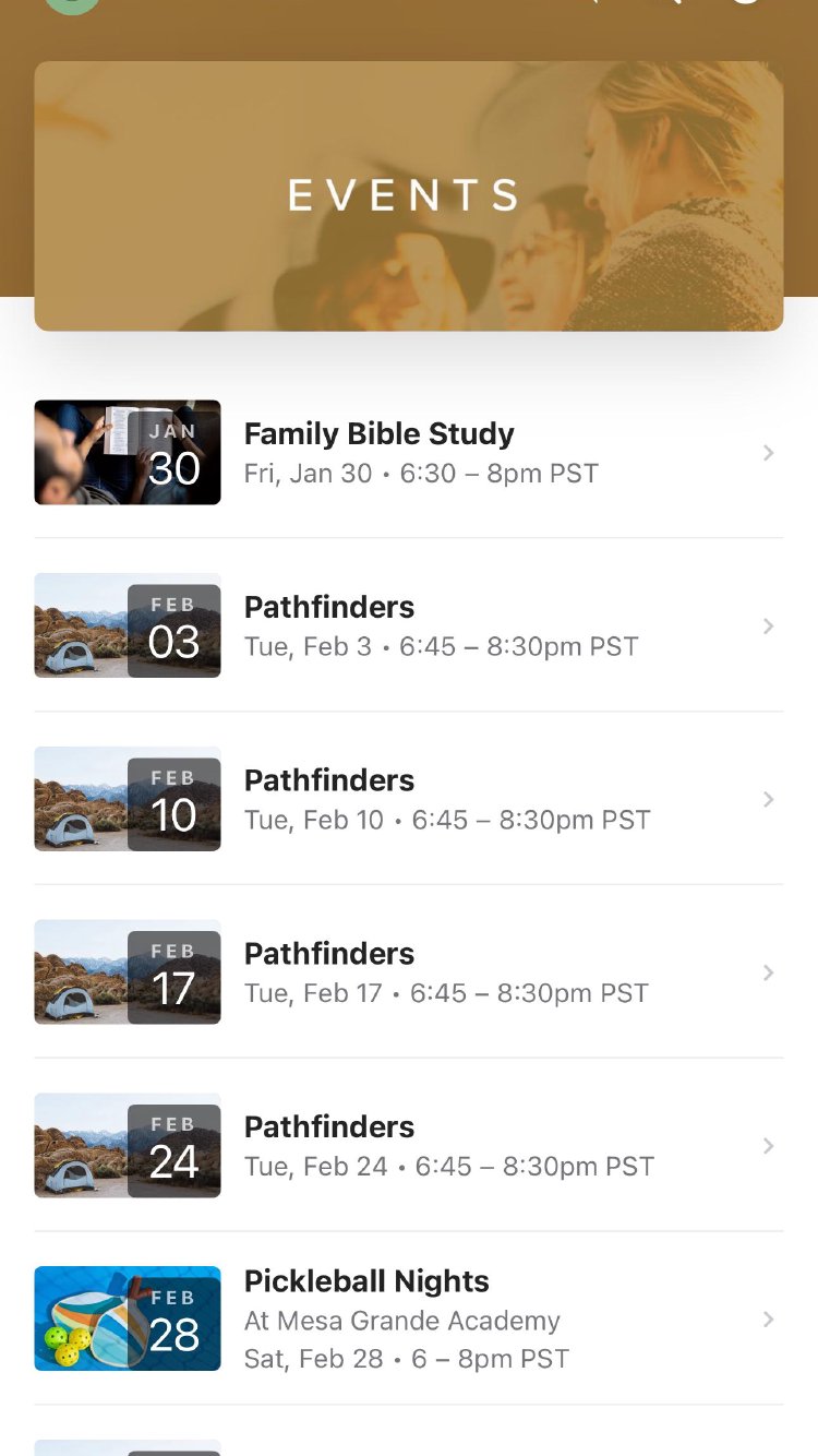 The Calimesa Seventh-day Adventist Church app is designed to keep our church family connected, informed, and engaged with everything happening in our community. Through the app, members and visitors can stay updated on current and future events, view weekly bulletins, securely give donations, and access Sabbath School curriculum for all age groups. The app also provides convenient tools to register for upcoming events and ministry activities, as well as safely check children in and out of church programs. With additional features that support communication, involvement, and spiritual growth, the Calimesa SDA Church app serves as an all-in-one hub for staying connected to the life and mission of our church.