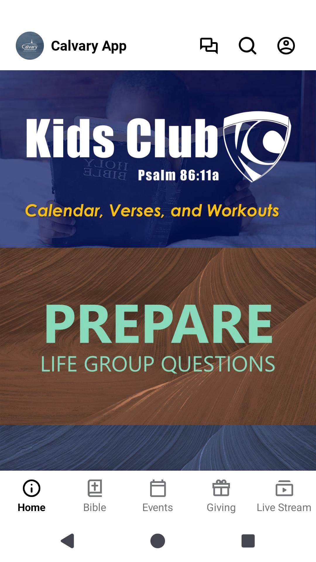 Welcome to Calvary Baptist Church in Georgetown, DE. Within our app you will be able to catch up on sermons and church news, register for events, and make donations to our ministry. In addition, this resource is a means for you to connect with the Calvary community (via separate login). Connect with us today.