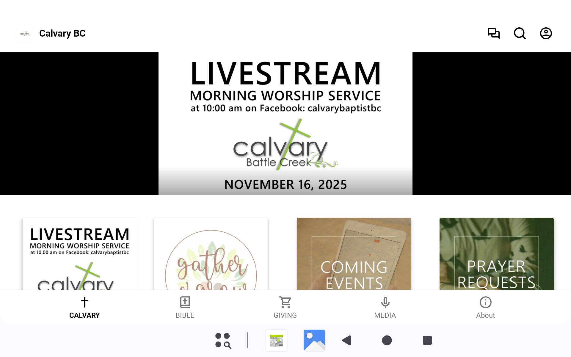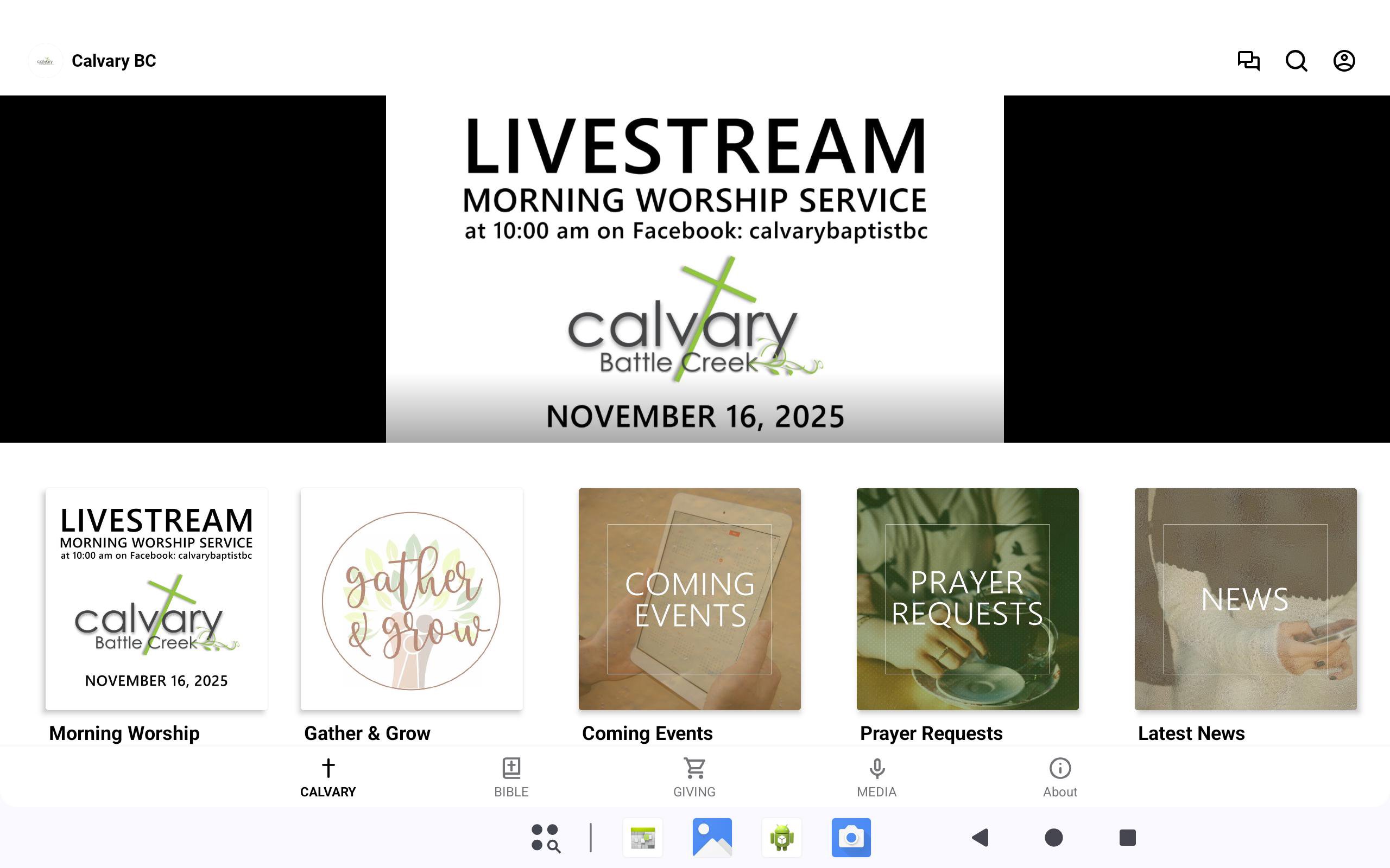 Welcome to the official Calvary Baptist Church BC, MI app! We are "Growing a Great Family at Calvary," and we invite you to join with us. We hope that this app will encourage you and help you as you take your next spiritual step. Here are some highlights of the app: - Share your prayer requests and allow us the privilege of praying for them - Daily Bible Reading passages so that we are all literally "on the same page" - Listen to or watch the weekly sermons - Receive push notifications from the church - Conveniently give your tithes and/or offerings online - Find out about our Coming Events - Keep up-to-date with the latest News Check out all kinds of interesting content and share it with friends via Facebook, Twitter, or email. For more information about Calvary Baptist Church of Battle Creek, Michigan, please visit: http://www.calvarybattlecreek.com/. The Calvary Baptist Church BC, MI App was created with the Subsplash App Platform.
