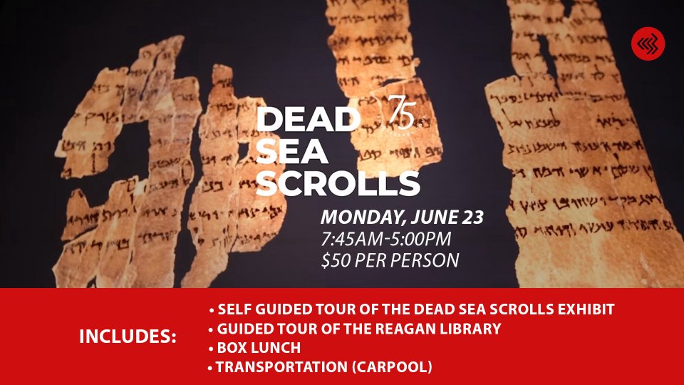 Join us Monday, June 23 from 7:45am-5:00pm to see the Dead Sea Scroll exhibit at the Reagan Library!