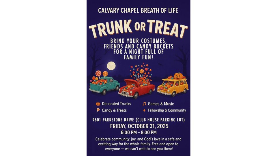 Please join us as we host a Trunk or Treat outreach in the neighborhood of our new church (Parkside @ Westphalia)! This event is a wonderful opportunity to provide children and families with a safe, fun, and Christ-centered alternative for the season.