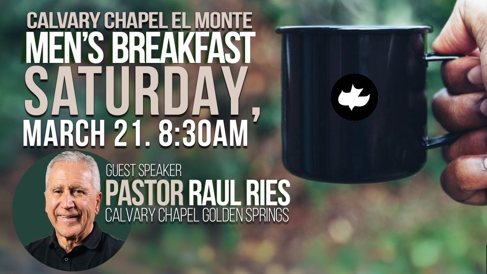We're inviting ALL THE MEN to come out for this special breakfast - as we are beyond blessed to welcome Raul Ries, the Senior Pastor of Calvary Chapel Golden Spring, as our guest speaker that day. Pastor Raul is one of the first men God used in the Calvary Chapel movement, with an amazing testimony documented in the book and movie, "From Fury to Freedom." We're encouraging ALL THE MEN to come, and to consider sponsoring other young men for what is sure to be a life changing event!