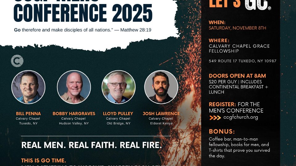 Men’s One Day Conference: Saturday, November 8th from 9-5 pm at CCGF. Join us with guest pastors Lloyd Pulley from CC Old Bridge, Bobby Hargraves CC Hudson Valley & Josh Lawrence CC Eldoret, Kenya. Breakfast will be served starting at 8:00 am with the conference beginning at 9. Cost is $20 per guy. This includes a BBQ lunch and admission. Register at ccgfchurch.org.