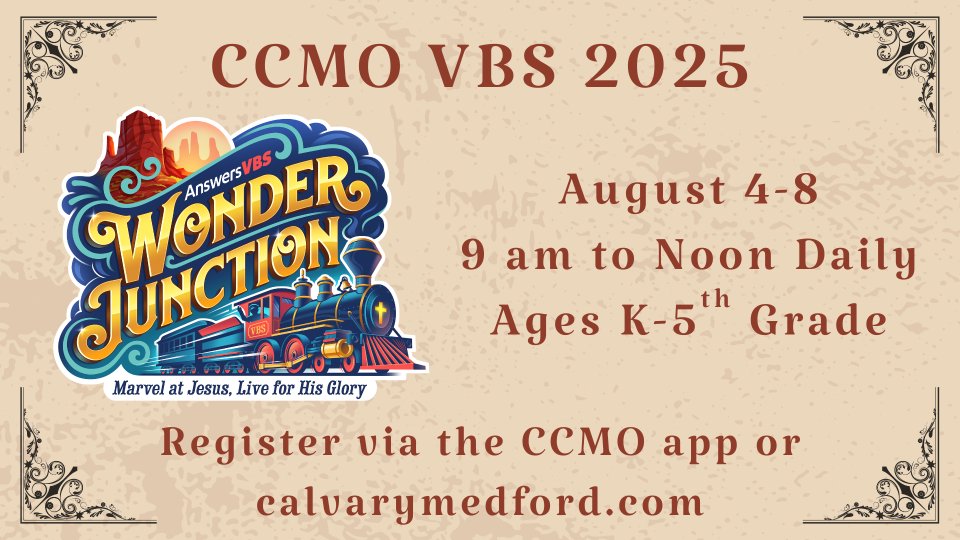 For kids K-5th grade. CCMO will be transformed into an old western town for a fun and faith packed week!