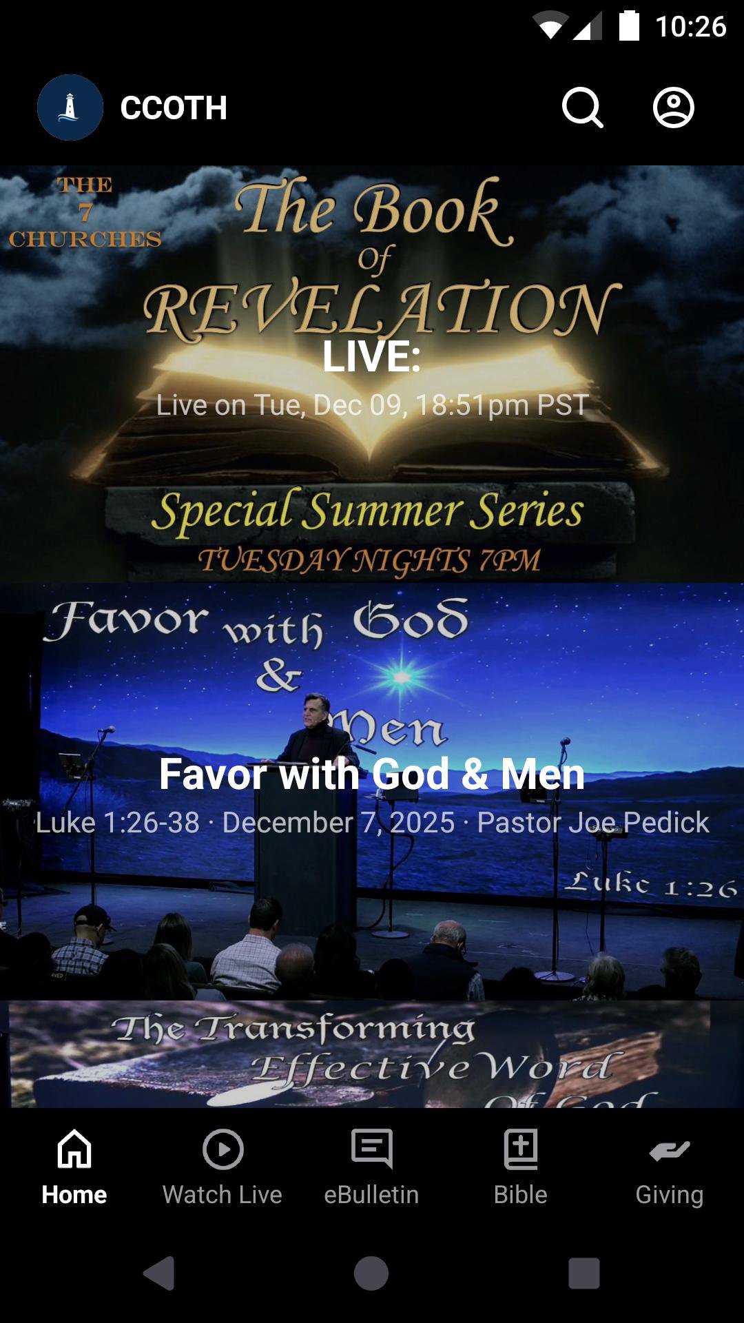 Bible teaching verse-by-verse plus livestreaming contemporary worship service live from Huntington Beach, California. We teach the saving grace, love, and forgiveness of Jesus Christ - the Bible verse by verse. We're Calvary Chapel of the Harbour, a non-denominational evangelical church. Scripture is our lens to fact check; His Word guides us through current events in these Last Days in the comfort of GOD's Word. Connect with Christians your age who share your values through Prayer, Worship, Communion, Bible Teaching & Christian Fellowship.