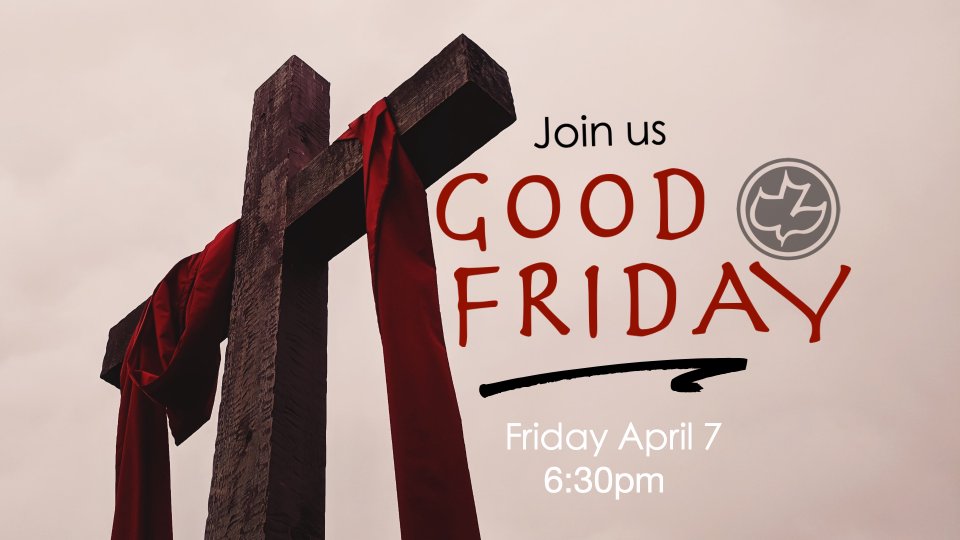 All are welcome to attend this special Good Friday service where we will worship our Lord Jesus Christ and learn of His great sacrifice so that we could be reconciled with His Father. This will be a short service with Worship, the Word and Communion. Please Join us.