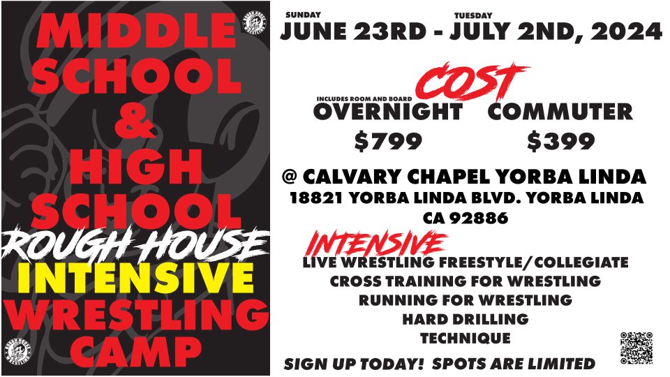This is a INTENSIVE Camp with LIVE WRESTLING FREESTYLE/COLLEGIATE CROSS TRAINING FOR WRESTLING RUNNING FOR WRESTLING HARD DRILLING TECHNIQUE This is designed for mental toughness/endurance that will have kids prepared for FARGO and any other tournament