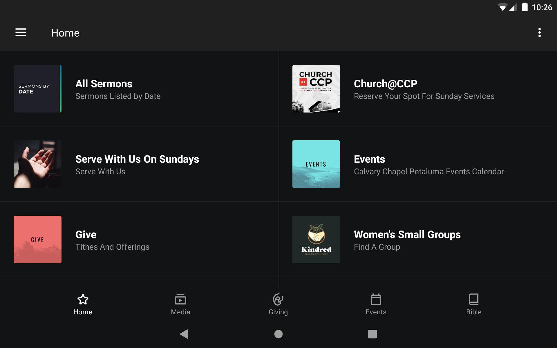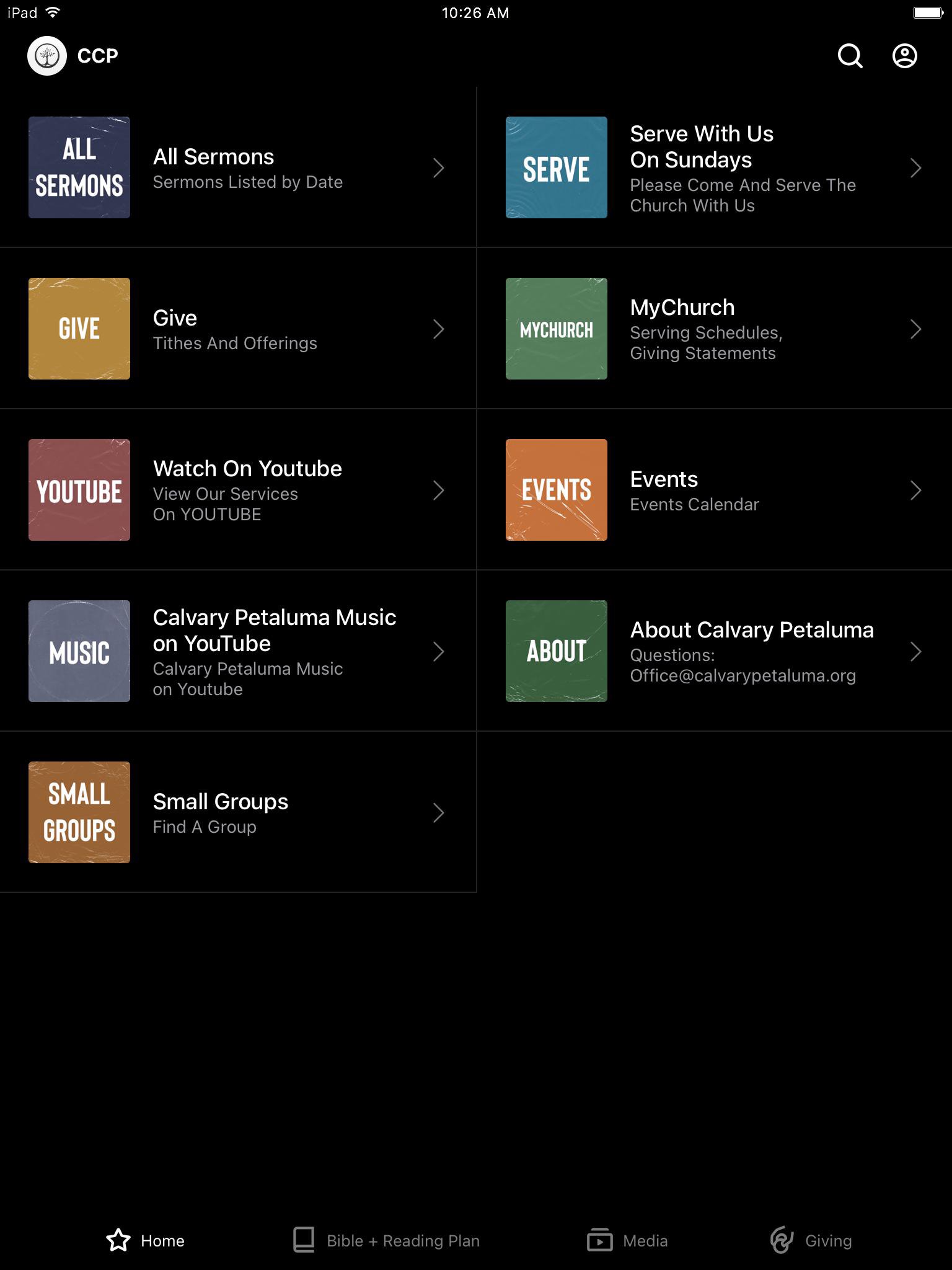 Download our Calvary Chapel Petaluma app to find information on upcoming events, listen to music written by our worship team, find our Bible reading plan, and more! At Calvary Chapel Petaluma we are a body of believers in Jesus Christ who want to grow in our love for God, our love for people, and to serve and reach the world. For more information about Calvary Chapel Petaluma, please visit: calvarypetaluma.org Features: Sermon audio and video Listen to music from our worship team Stay up-to-date with upcoming event information Integrated Bible and reading plan Weekly bulletin The Calvary Chapel Petaluma App was created with the Subsplash App Platform.