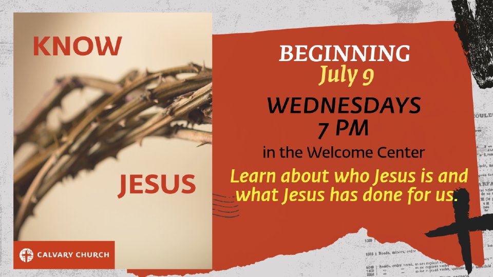 Pastor Randy will teach the Know Jesus class (six lessons) over three weeks. The class will be held on Wednesday evenings at 7 pm beginning July 9 in the Welcome Center. The class will offer Zoom for those who can’t attend in person. Even if you believe you have a solid understanding of Jesus, this class will strengthen your faith and help you better communicate what you believe about Jesus to your family, friends, and coworkers.