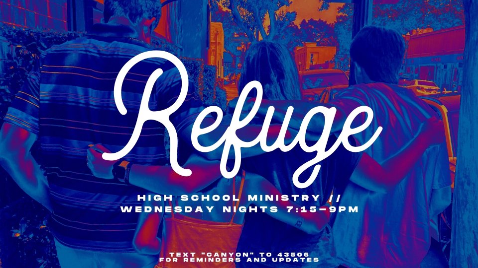 Refuge is an exciting place for High School Students to seek Jesus and grow in their faith! It’s also a place where they can find Christian community and have tons of fun. We meet in person on Wednesday Nights 7:15-9:00 PM. Please text the word “ CANYON “ to 43506 for event updates that go directly to your text messages. Refuge also has a podcast called “The Outsiders (Canyon Creek Students)” available on Spotify & Apple Podcasts. Contact Zakk Uhler for more information about Refuge!