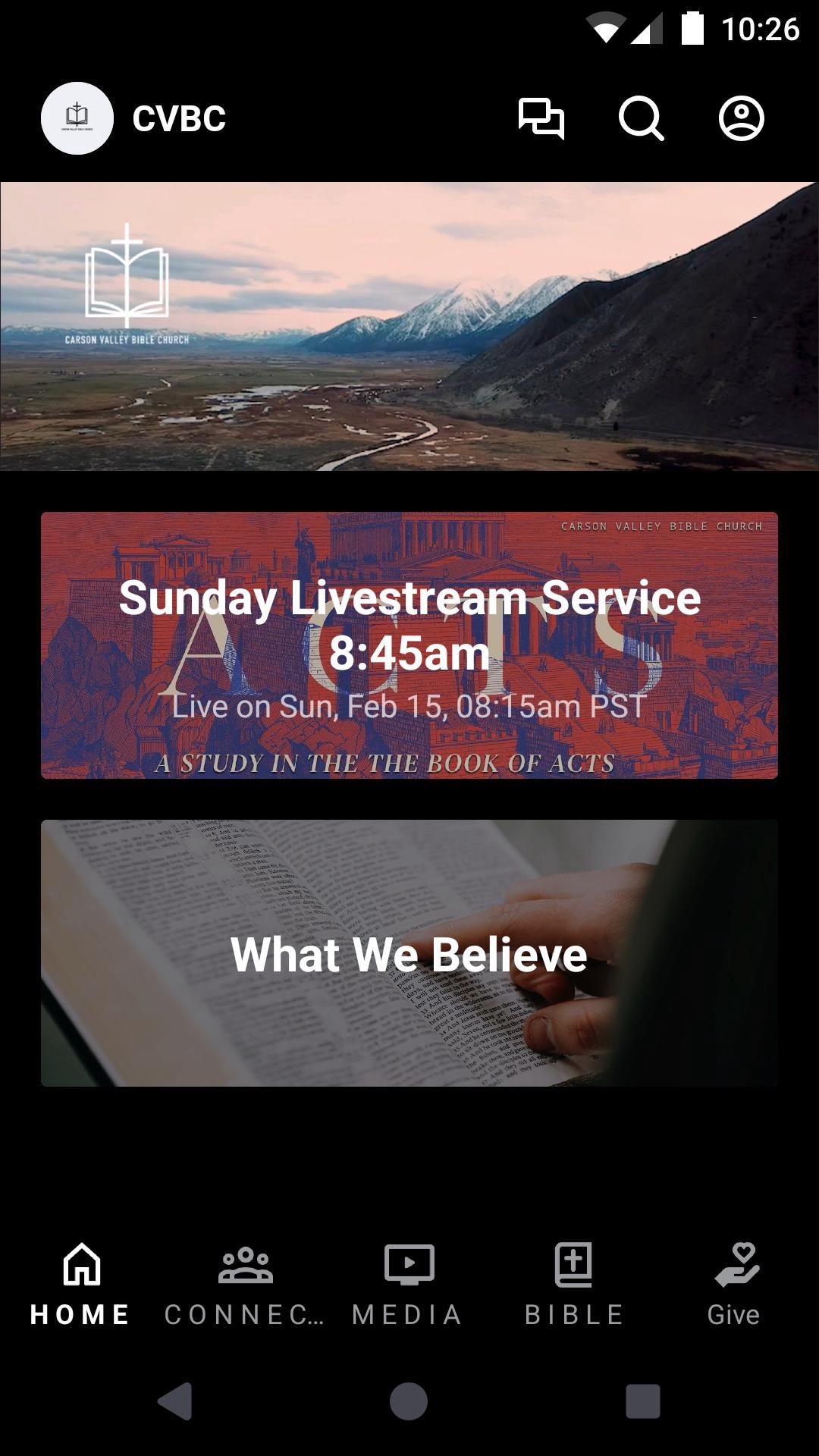 This app will help you stay connected with the day-to-day life of Carson Valley Bible Church! With this app you can: watch or listen to past messages; stay up to date with push notifications; share your favorite messages via Twitter, Facebook, or email; receive church communications; download messages for offline listening; share a prayer request, sign up for an event, and more!