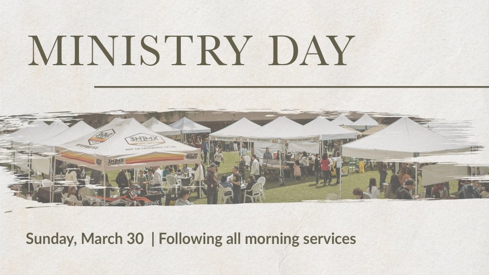 Check out all the ministries here at the Barn after every morning service on Sunday, March 30th. Ministry Day gives you a chance to learn details you may not know already regarding a particular ministry and how to get involved. Meet all the ministry leaders and see what the Lord is doing here at Calvary Chapel Bible Fellowship.