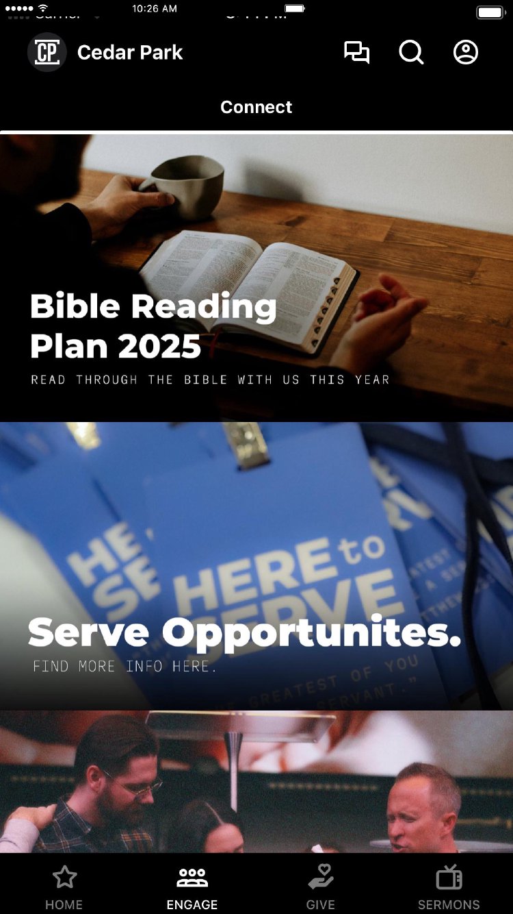 Cedar Park's app is packed with powerful content and resources to help you grow and stay connected. Located in Bothell, WA Cedar Park Church is all about creating opportunities for people to be changed by the good news of Jesus Christ and here are some ways this app helps foster that mission: - Live Stream services - Engage with past sermons on-demand or download for offline use - Kids & Youth Ministry channels & content - Cedar Park's Worship albums - Access church information & calendars - Connect with people by signing up for events or groups - Stay up to date with push notifications