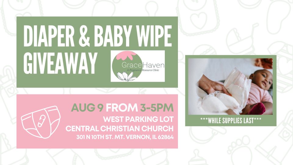 GraceHaven Pregnancy Resource Clinic will be handing out diapers to families in need - while supplies last. (West Parking Lot by Door 3) We are excited for this giveaway happening again soon here at Central!🤍