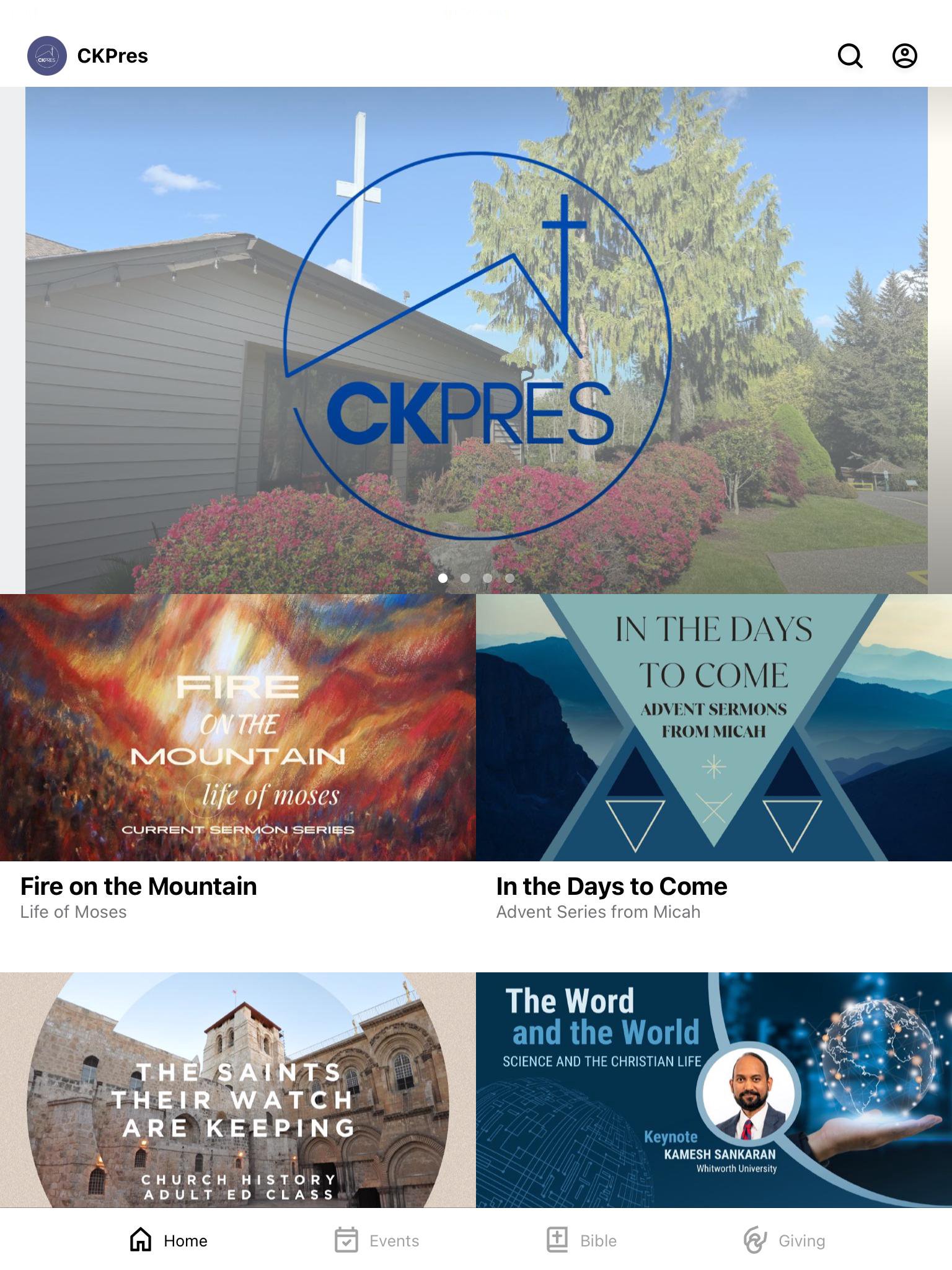 This app will help you stay connected with the day-to-day life of CKPres. With this app you can: - Watch or listen to past messages - Stay up to date with event notifications - Share your favorite messages via Twitter, Facebook, or email - Read Scripture
