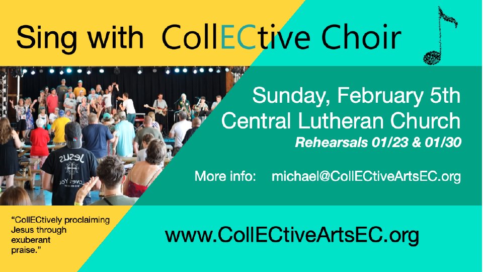 Join the Collective Choir when the visit Central the first week of February. This is your chance to be part of a collective gospel choir that serves the Chippewa Valley. Contact Michael Rambo for more information.