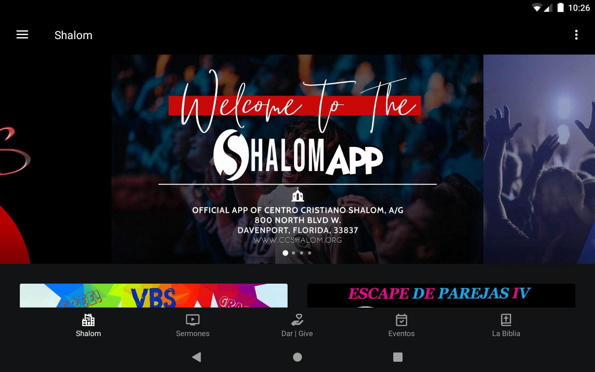 Official App For Shalom Church in Davenport, Florida. A great way to get to know and connect with the CCShalom Family! Stay connected with the day-to-day life of our church. With this app, you can: watch or listen to past messages; keep track of our upcoming events; stay up to date with push notifications; and share your favorite messages via Twitter, Facebook, or email.