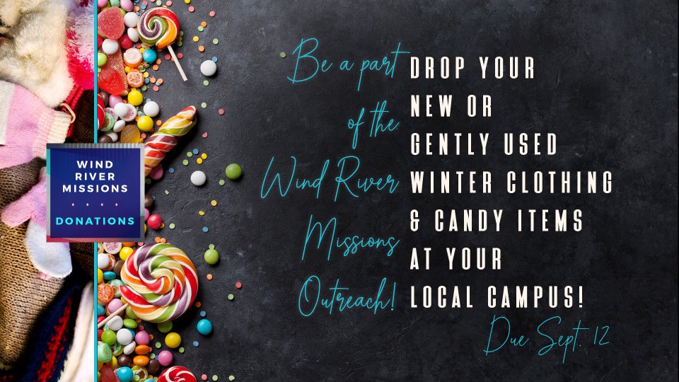 Our missions team will be heading to Wind River Indian Reservation in September. Be a part of this outreach by donating new or gently used clothing including: Coats Winter hats & gloves Sweatshirts & sweaters Warm clothing (pants, longs-sleeved shirts, etc.) We are also collecting individually wrapped candy for the Harvest Party outreach event. Drop off items at your campus by September 12. About the Wind River Ministry Trip: The Native Americans have often been called the forsaken and forgotten people. Yet God has not forgotten them! We are called to show the Native Americans the unconditional love of God, where broken treaties have betrayed them and history has cast them aside. We will be partnering with our missionaries, Jason and Sarah Lucas, to minister to the Northern Arapaho and Eastern Shoshone Indians located on the Wind River Reservation in Wyoming. We will help host a Harvest Festival outreach, assist with construction on the new church building, and demonstrate the love of Jesus to the Native American people through other practical outreaches.