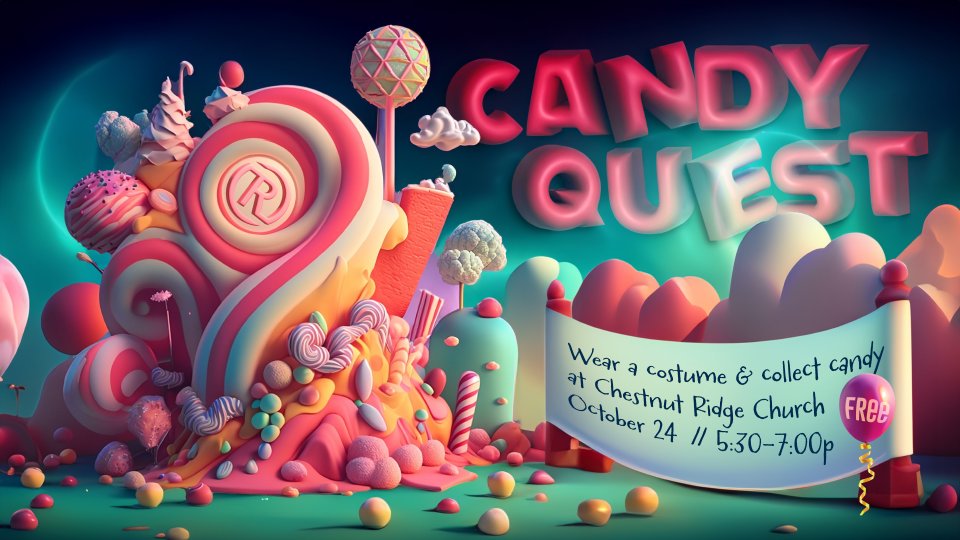 Get ready for a sweet adventure! Candy Quest is happening at The Ridge on Thursday, October 24, from 5:30-7p. Wear your favorite family-friendly costumes and come along for a whimsical journey as The Ridge is transformed with over 50 creatively designed candy stops. Candy Quest is a FREE, indoor event open to all families, so invite all your friends and neighbors to join you!