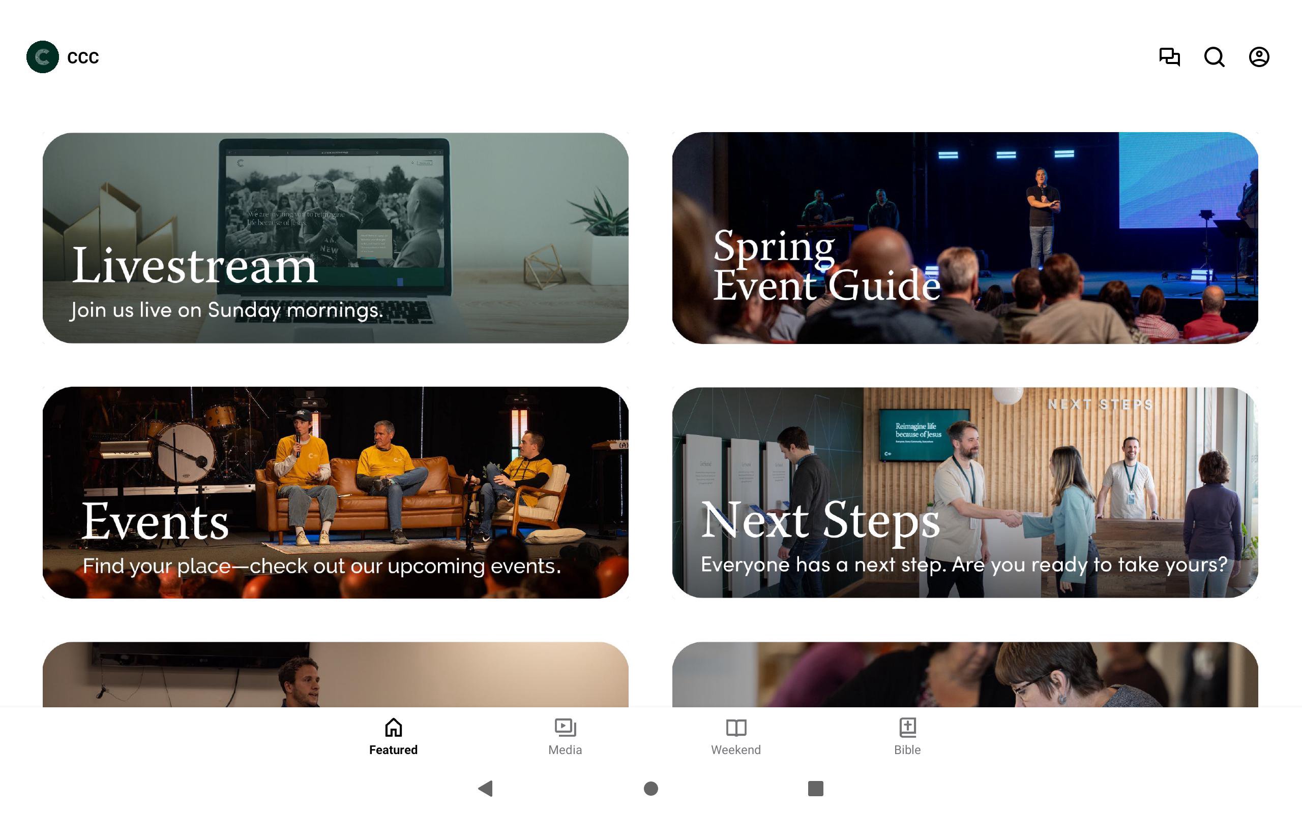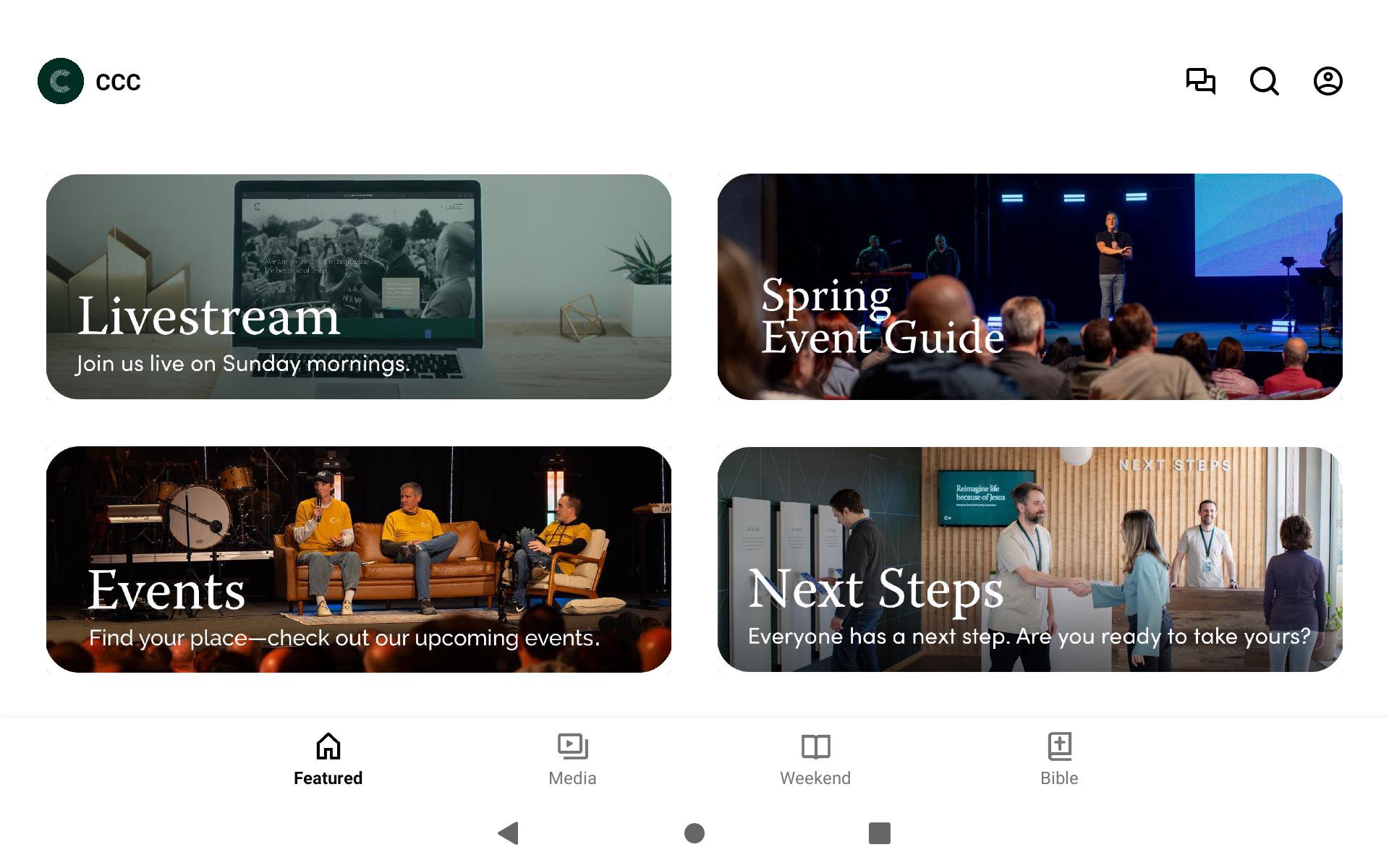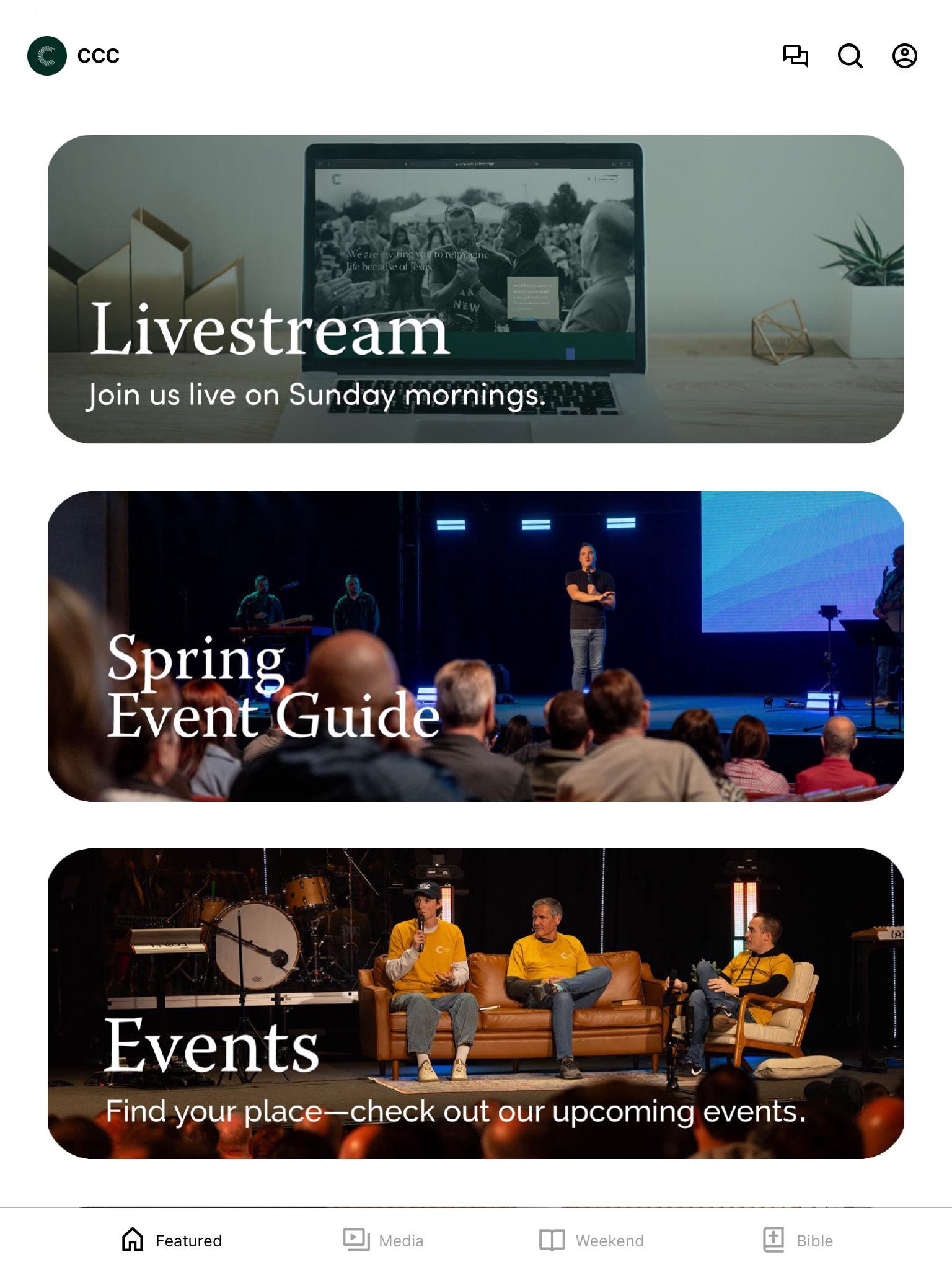 Did you know we have an app for Apple, Android, Amazon, and Roku devices? You can stay connected to what’s happening around here, watch or listen to messages, view upcoming events, and more. Search “The CCC App” in your app store or click the links below to download.