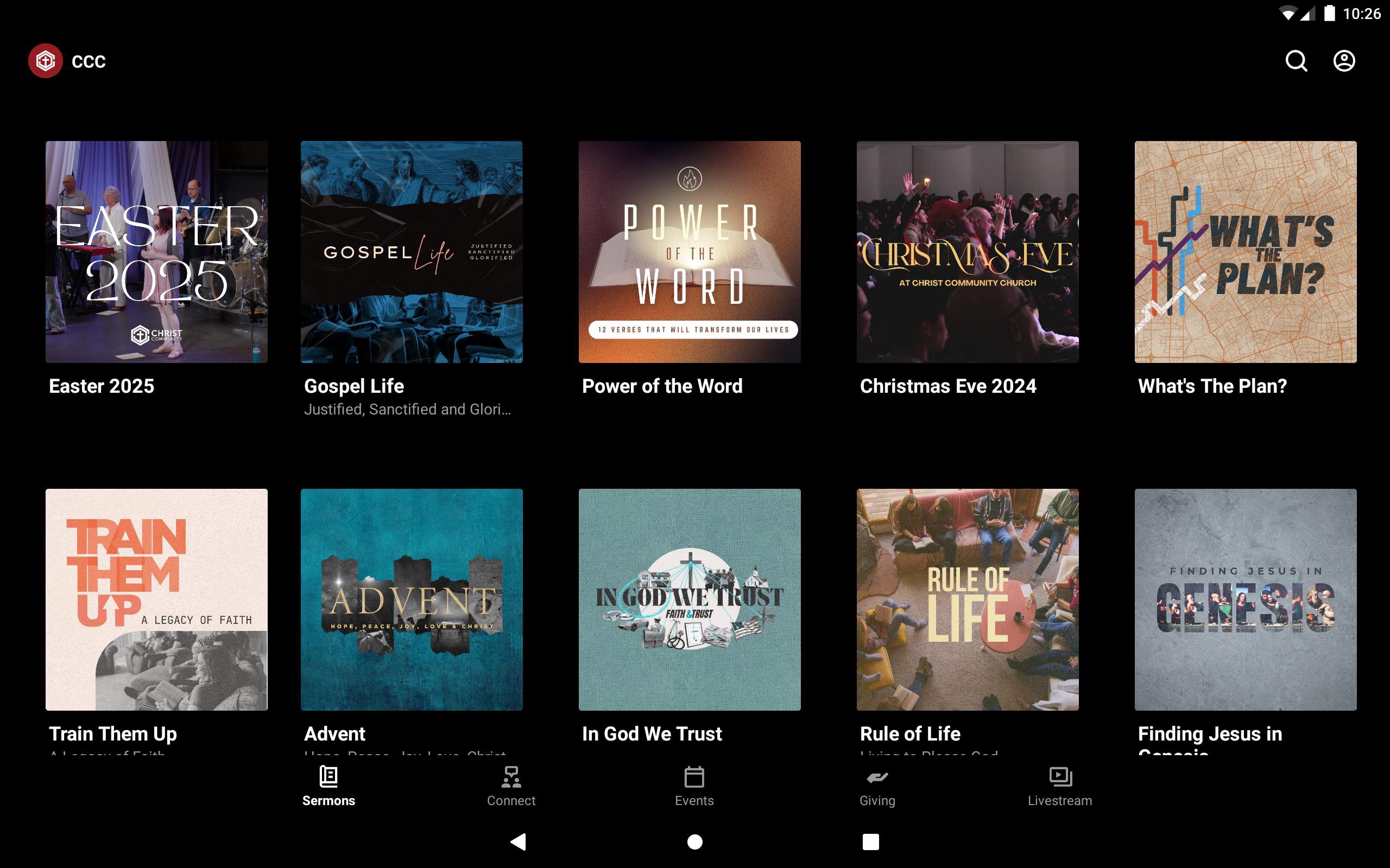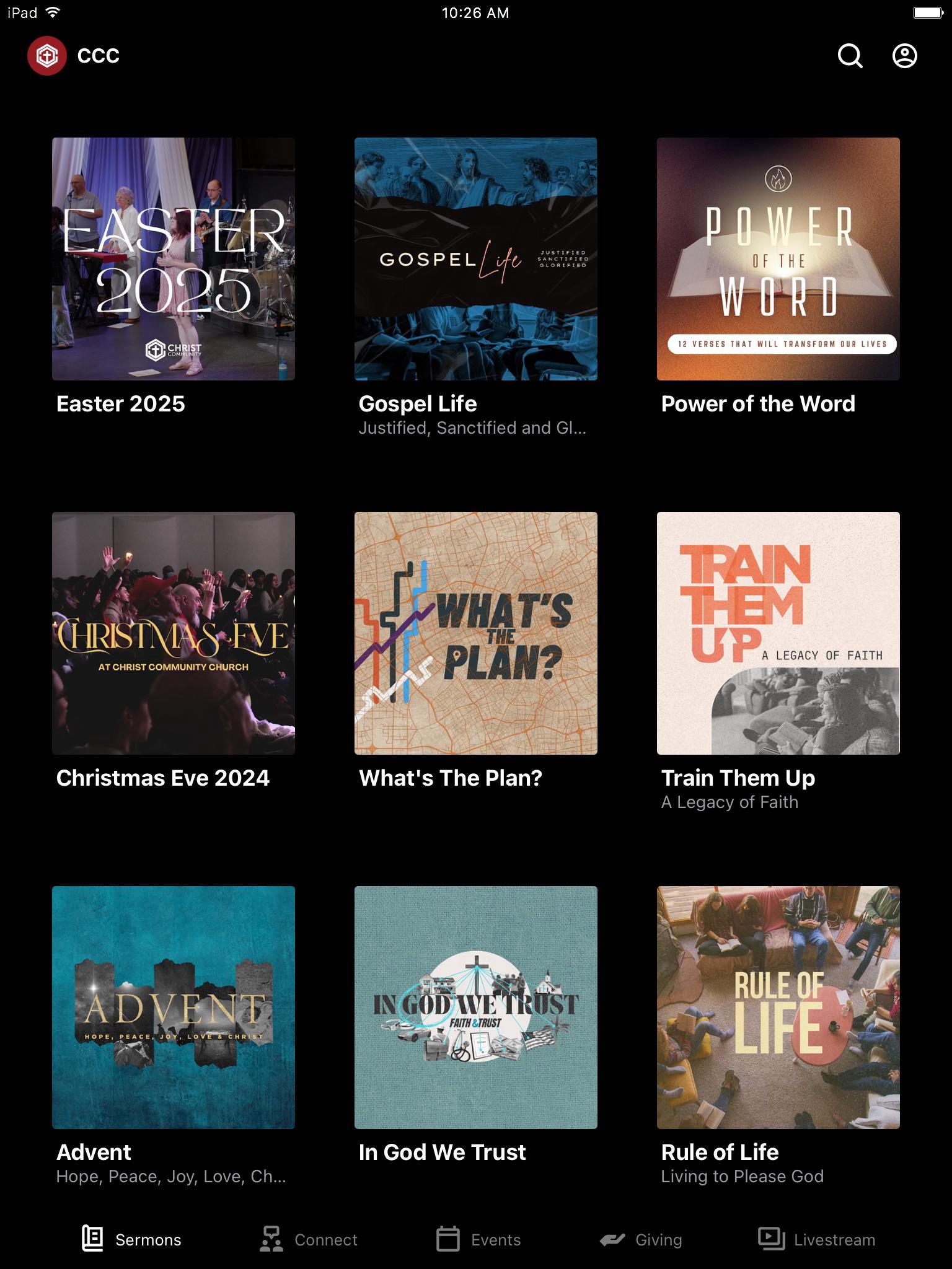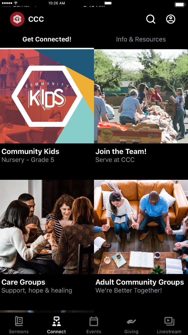 Welcome to the official CCCFamily app! Check out all kinds of content that interests you. After you’ve downloaded and enjoyed the content, you can share it with your friends via Twitter, Facebook, Instagram or email. For more information about Christ Community Church, please visit: http://www.cccfamily.com/ The CCCfamily app was developed with the Subsplash App Platform.