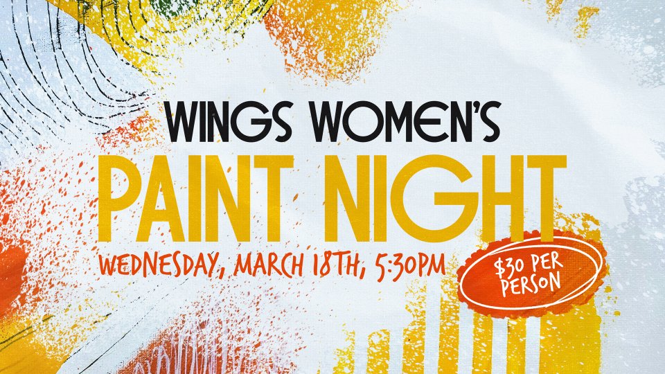 Join us for a Ladies Paint Night on Wednesday, March 18th as part of our W.I.N.G.S. Ministry (Women In God’s Service). Arrive at 5:30 PM for dinner, with painting beginning at 6PM. This is a two-hour guided class, and all supplies will be provided by the instructor. Cost is $30 per person with dinner, snacks, and drinks provided.