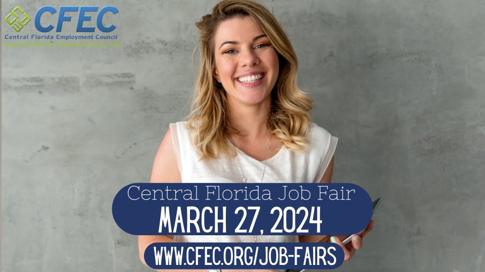 Date: March 27 , 2024 Name: Central Florida Job Fair Time: 12:00pm - 4:00pm Venue: Central Florida Fairgrounds Expo Building Address: 4603 West Colonial Dr., Orlando, FL 32808 Profile: All Job Seekers are welcome to attend. Nearly 100 employers in attendance. Hiring is happening; dress interview ready and bring plenty of resumes, free admission/parking. Learn more and register today: www.cfec.org/job-fairs/schedule