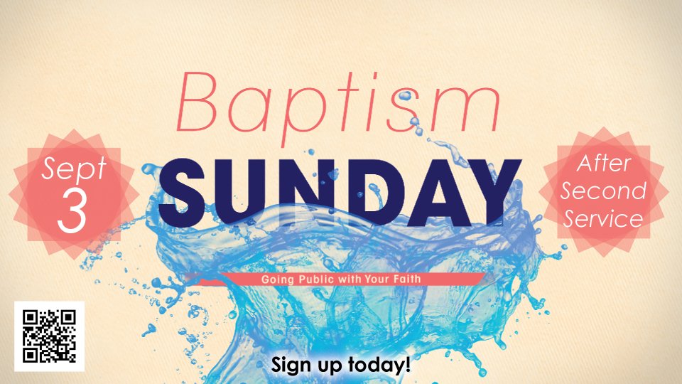 Our next Water Baptism takes place on Sunday, September 3 at the conclusion of the 11 a.m. service at CLC. Baptism is an important part of your walk with God. Say goodbye to the old person and hello to the new you - a new creation in Christ! Please sign up by August 27 by hitting the "Sign Up Here" link on this page. For more details, contact the CLC office by hitting the link for either email or phone number on this page.
