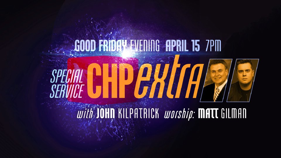 Join us at CHP on Friday, April 15 at 7 PM for a special service with Pastor John Kilpatrick and worship with Matt Gilman.