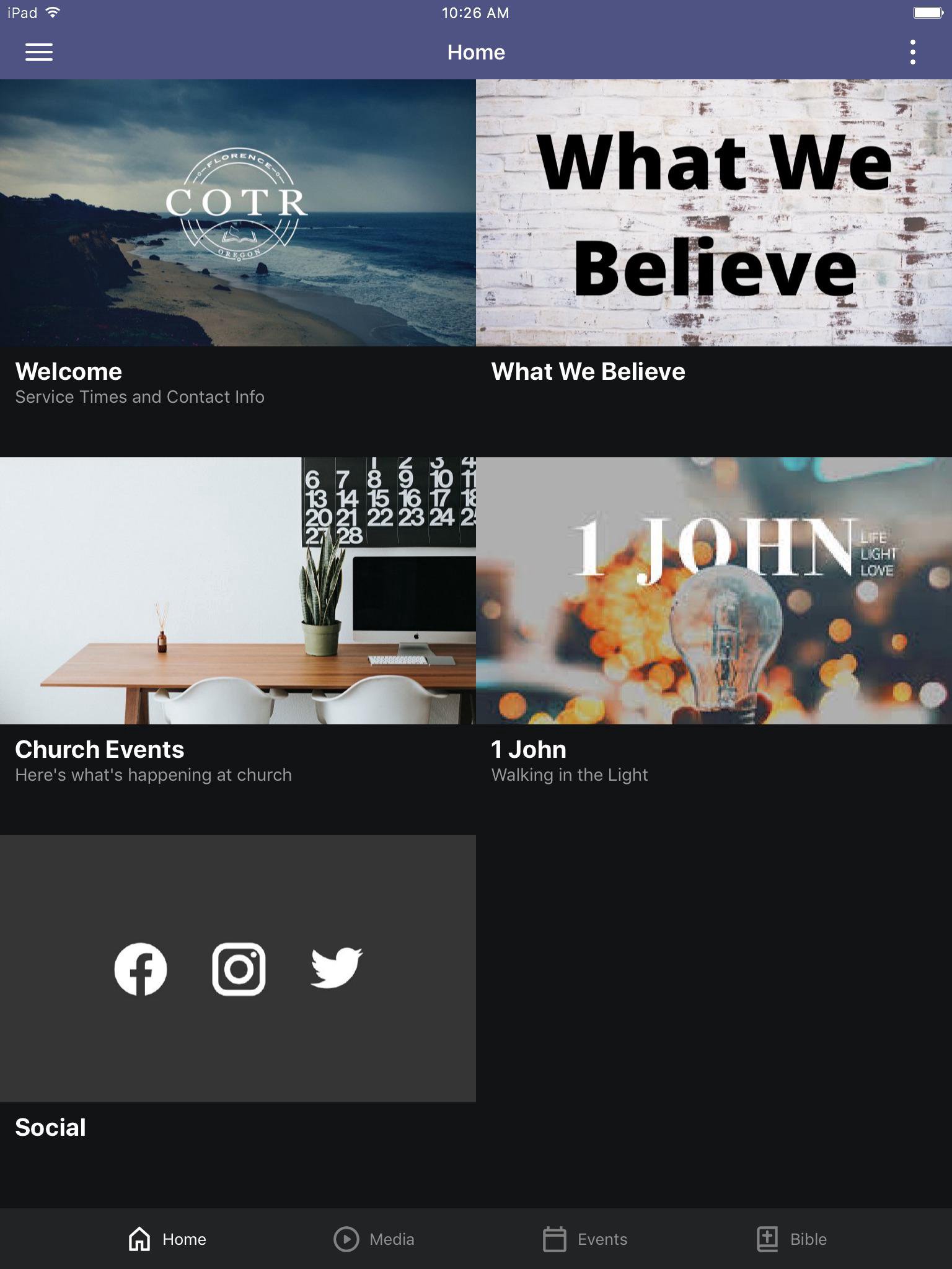 This app is packed with powerful content and resources to help you grow and stay connected with COTR (Church on the Rock) Florence. With this app you can listen to our messages, view our livestreams, keep up to date with push notifications for our events, follow our reading plans and even give through our secure gateway. We are excited to see you in the app!