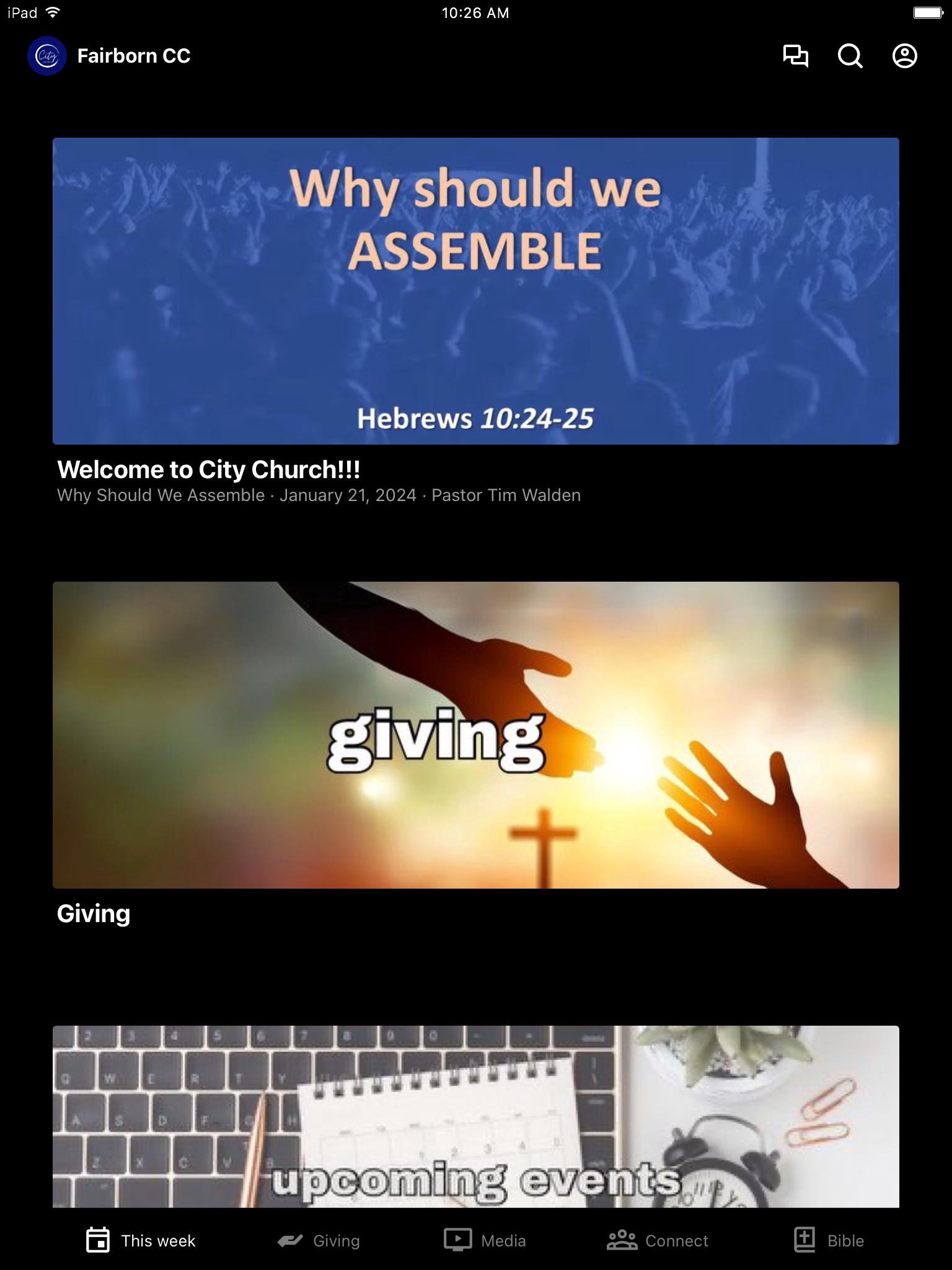This app will help you stay connected with the day-to-day life of our church. With this app, you can watch or listen to past messages, stay updated with push notifications, read the Bible, and view our calendar.