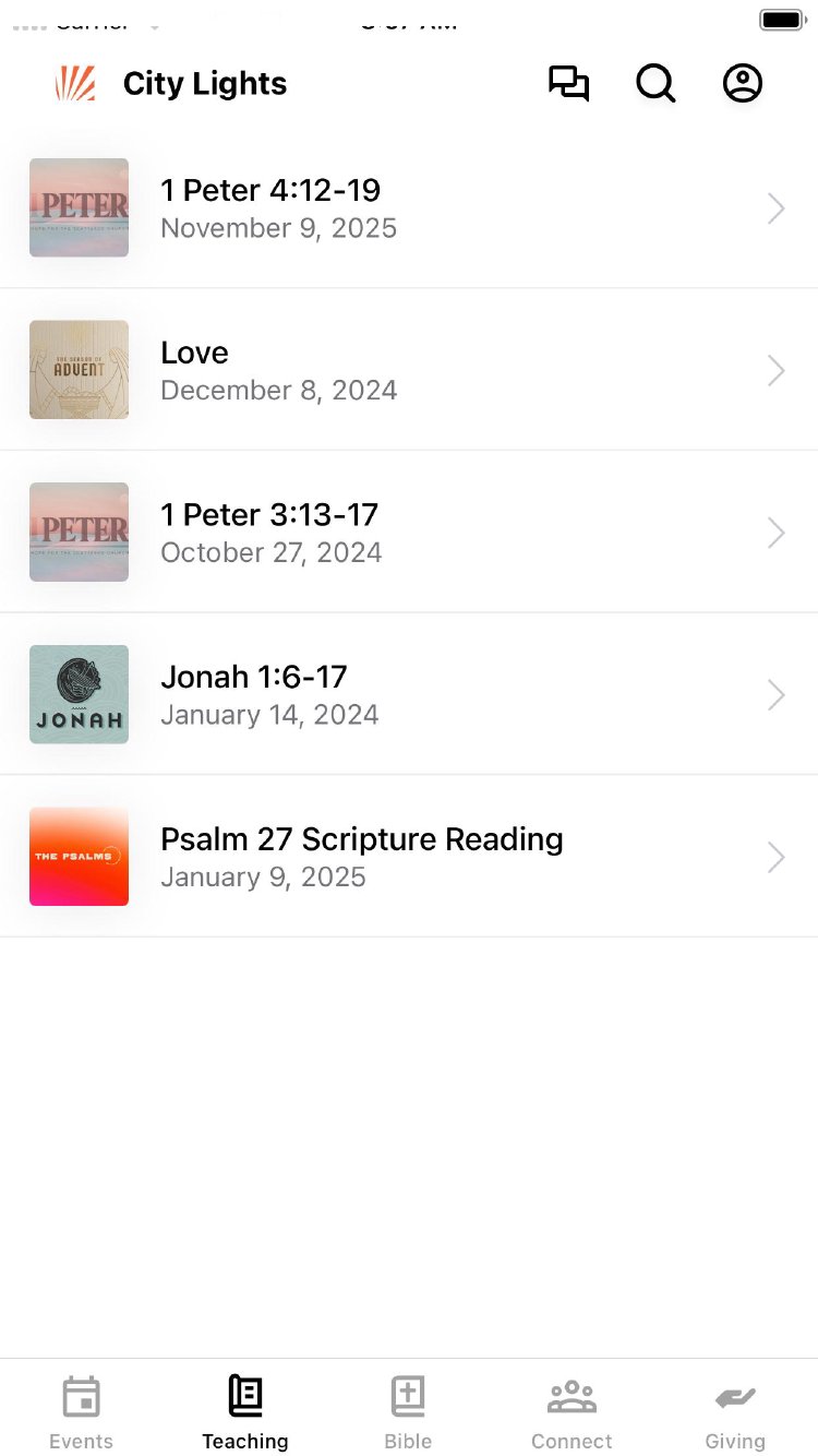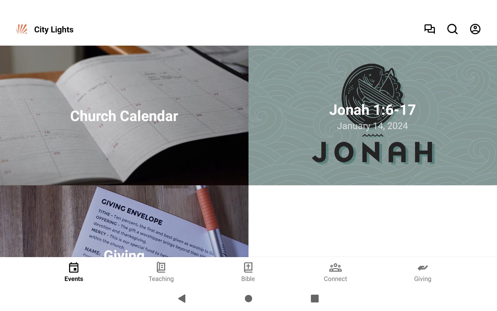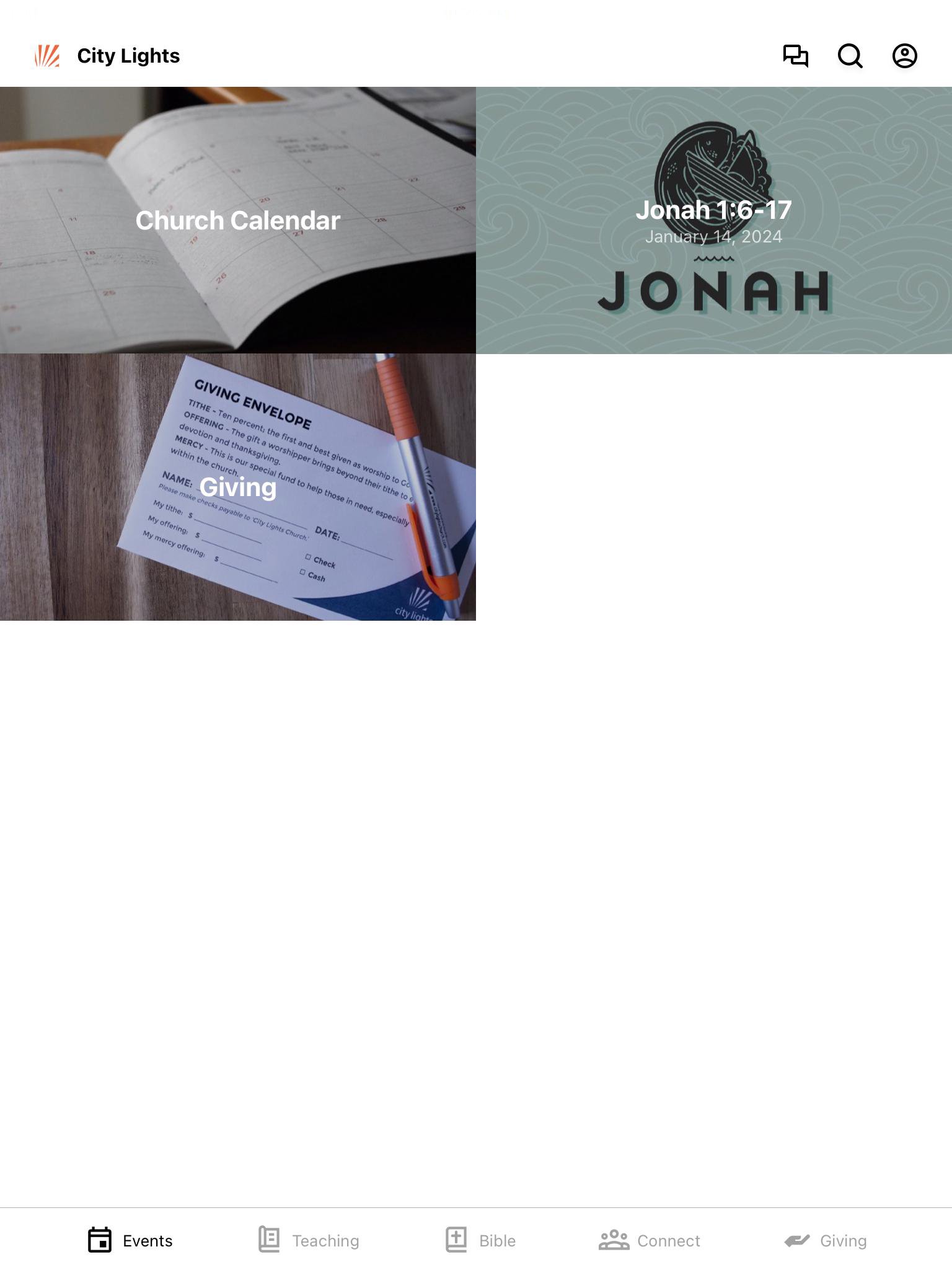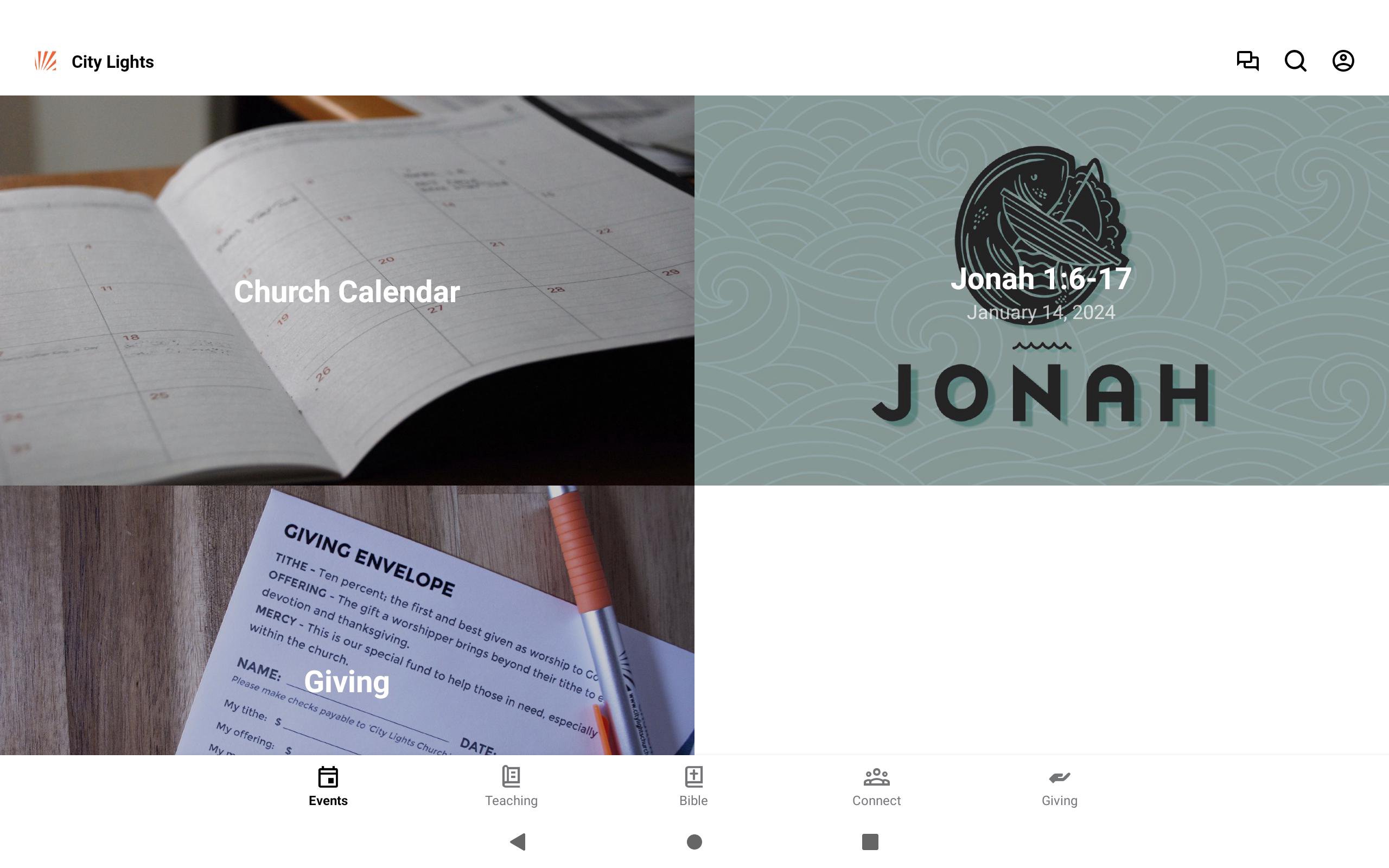 This app will help you stay connected with City Lights Church. With this app you will be able to listen to past sermons, give money to the church, receive messages and notifications of upcoming events, and manage your volunteering schedule with the church.
