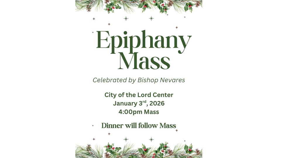 Please join us for the Epiphany Mass with Bishop Nevares. Mass will be at 4:00pm. A catered dinner will follow. Please RSVP early, as we need to prepare for food.