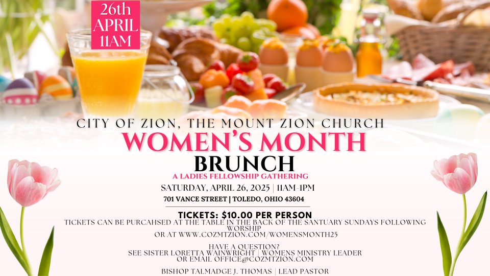 Join our Women's Ministry on Saturday, April 26th at 11 AM at the COZ Campus for an engaging event filled with Faith, Food, Fun, and Fellowship! Tickets are currently available for $10.00. You can purchase tickets by clicking register now or by paying in cash at the table located at the back of the sanctuary after Sunday worship.