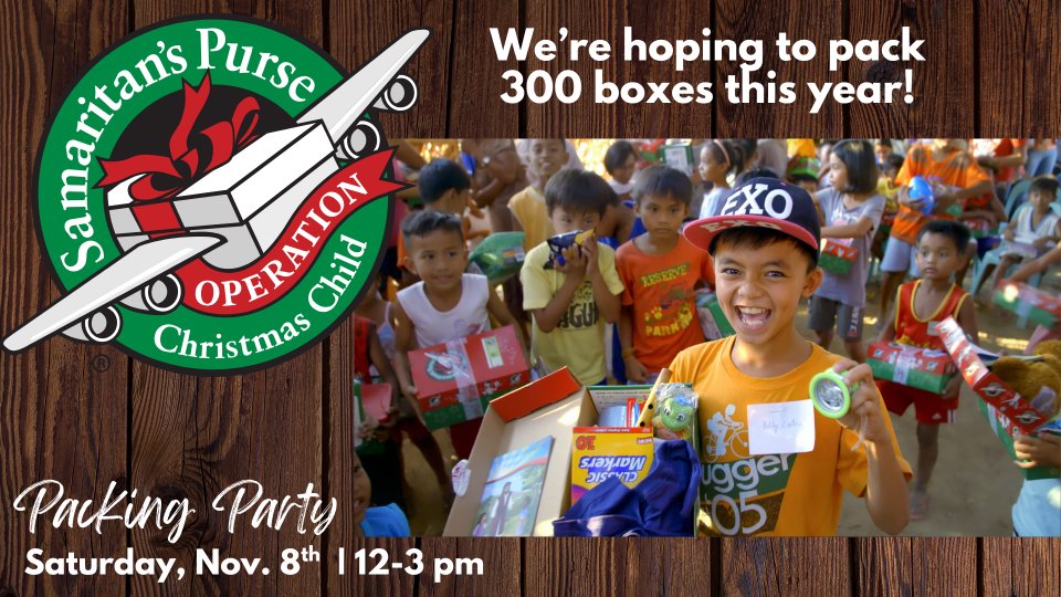 Join us for a fun and meaningful time as we pack 300 shoeboxes full of gifts and hope for children around the world! These simple gifts, packed with love, carry a powerful message of God's love. With each shoebox, kids are also invited into a 12 week discipleship program where they learn about Jesus! Click the "register now" button to let us know if you can come pack boxes!