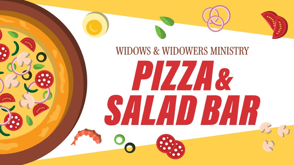 Join the Widows & Widowers Ministry for pizza and a salad bar on Thursday, May 7th, at 11:30am in the Coffee Shop. Enjoy a fun time of fellowship and lunch will be provided. Can't wait to see you!