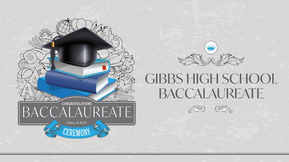 The Gibbs High School Baccalaureate Service will be held on Sunday, May 4th at Clear Springs Baptist Church. The service will begin at 6:00pm.