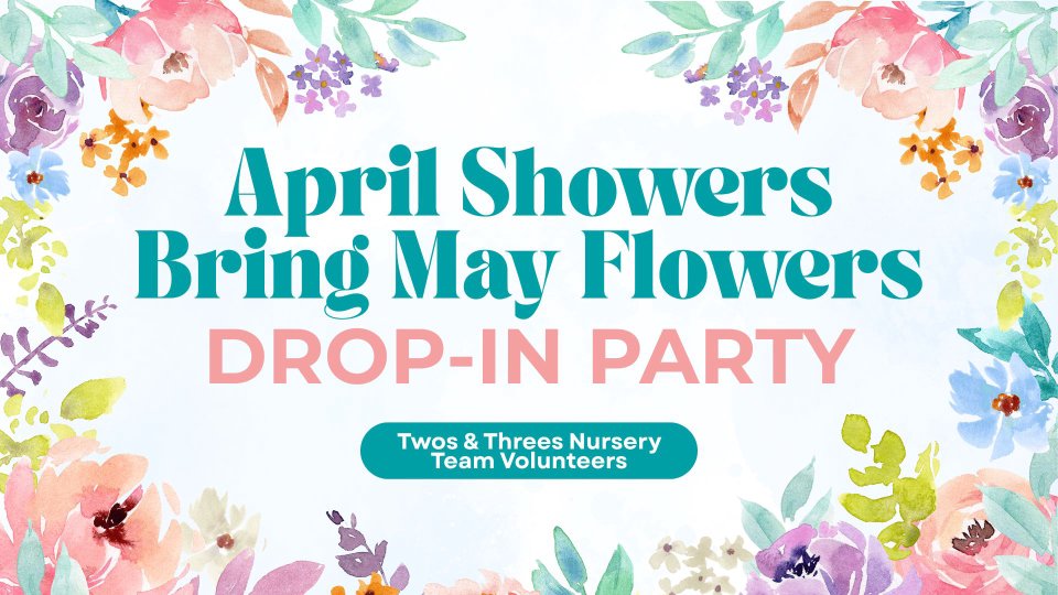 Our Twos & Threes Nursery Team Volunteers are invited to an “April Showers Bring May Flowers” Drop-In Party on Thursday, April 30 from 7:00pm – 8:30pm in the Coffee Shop. Enjoy a fun evening of fellowship with snacks and a build-your-own bouquet activity.
