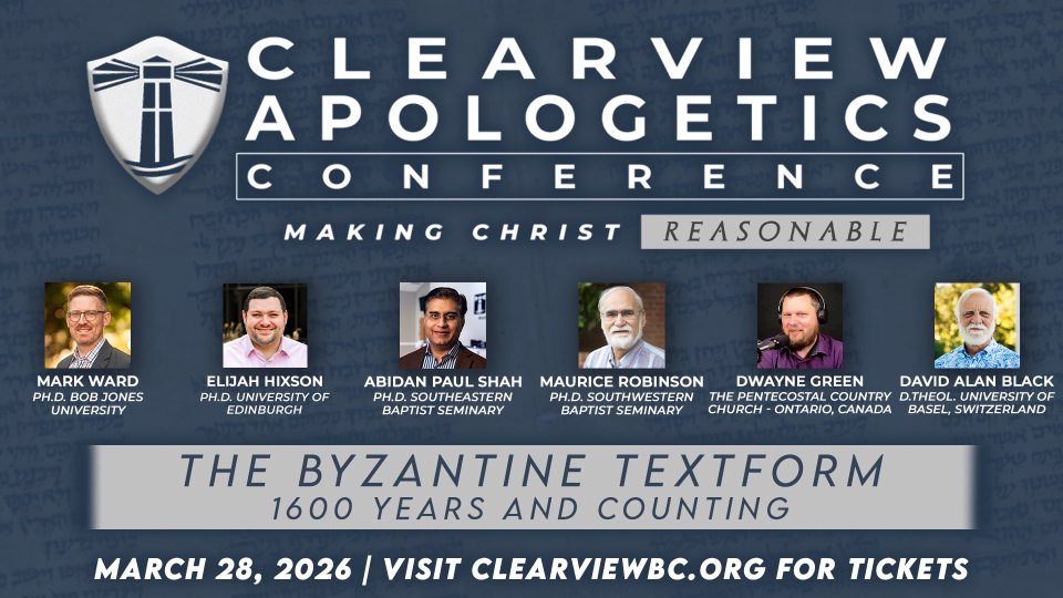 Have you ever wondered where our modern Bible translations come from? Join us on Saturday, March 28th, 2026, for Clearview's Apologetics Conference, where we will discuss this and much more! To accompany the release of the Robinson/Pierpont 2026 edition, the conference will host participants from both pro and con positions regarding the Byzantine text; then inform the lay public and academics of the merits and some common criticisms of the Byzantine textform.