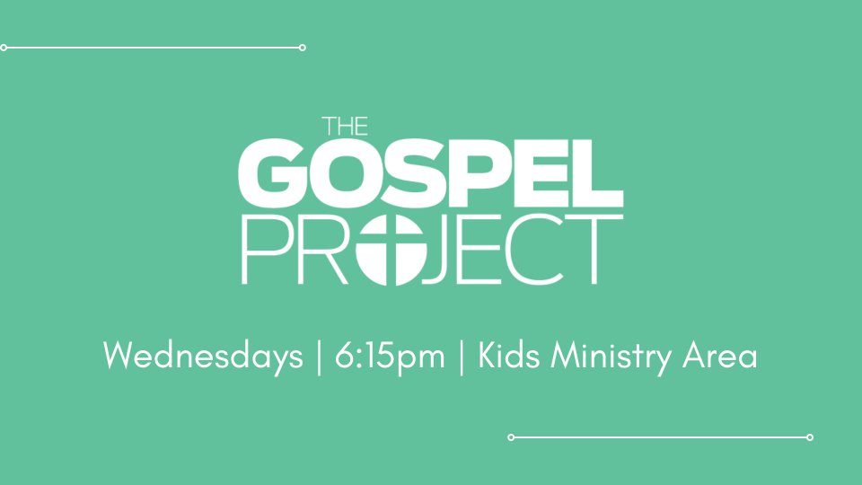 The Gospel Project® happening on Wednesday nights is a chronological, Christ-centered Bible study for Kids, Students, and Adults that examines how all Scripture gives testimony to Jesus Christ. Classes are offered for 4 years thru 5th grade. Childcare is available for birth thru 3 years. Dates that Gospel Project will not meet: Oct 18 (Fall Break) Nov 22 (Thanksgiving) Dec 13-Jan 3 (Winter Break)